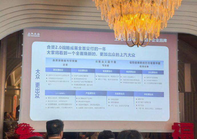 今天上汽大众家宴上分享了2026年产品交付规划,涉及上汽大众与上汽奥迪双品牌,快去做个汇总: - 业务布局:2025年将EA888动力带入Pro车型,同步推进油车智能化,2026年继续油电同智、油电同进,大量交付产品。 - 品牌策略: - 大众品牌:秉持进取、可靠、贴心理念,2026年技术革新,推出6款新能源产品,形象换新与体验刷新,其中就包括近期完成冬测且成绩很好的ID.ERA 9X。 - 奥迪品牌:2025年A5L Sportback搭载华为高端智驾,e - tron Sportback实现电动变革;2026年渠道与用户体验升级,推出上汽奥迪AUDI大5座中大型纯电SUV ET7X。 还有很多信息没有披露,但看得出来是个重磅产品大年,值得期待!