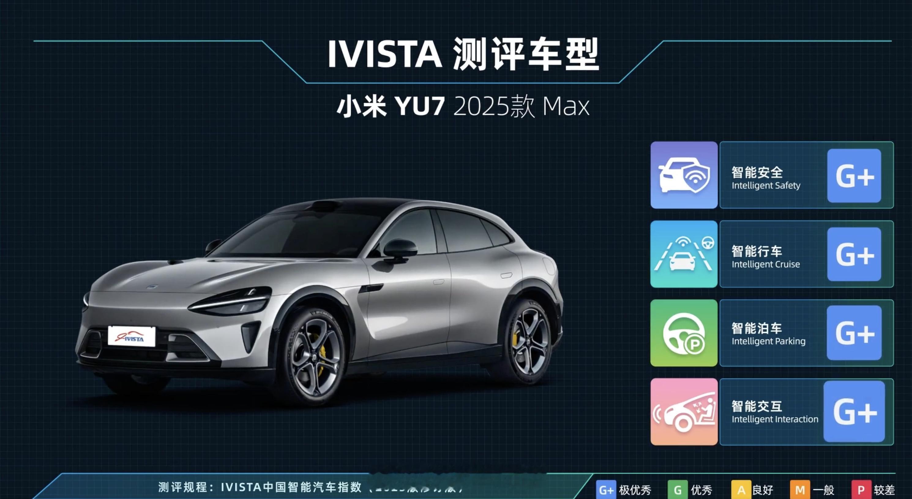 小米汽车辅助驾驶进步速度这么快的吗?小米YU7的智能安全、智能行车、智能泊车和智能交互四大项都是G+,也就是极优水平