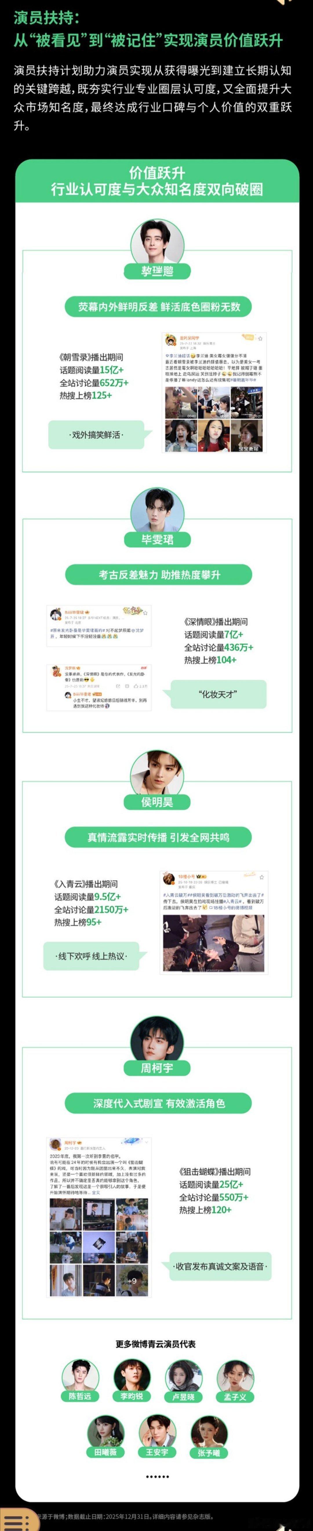 2025微博娱乐白皮书显示:李兰迪、敖瑞鹏等明星作为青云演员代表,行业认可度与大