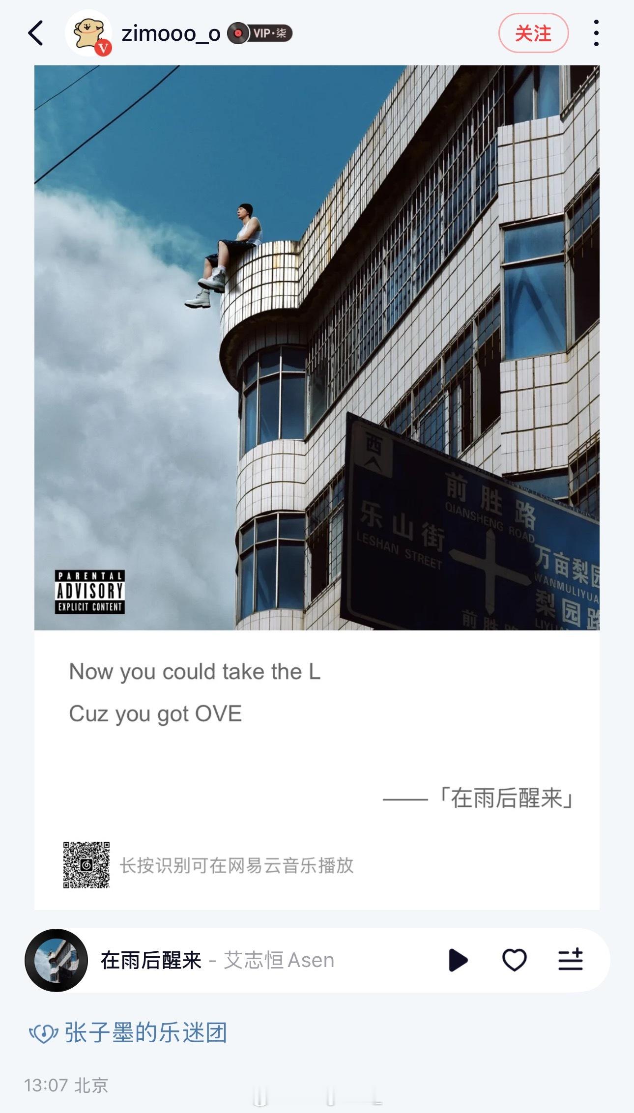 TF家族张子墨分享Asen《在雨后醒来》的歌词: