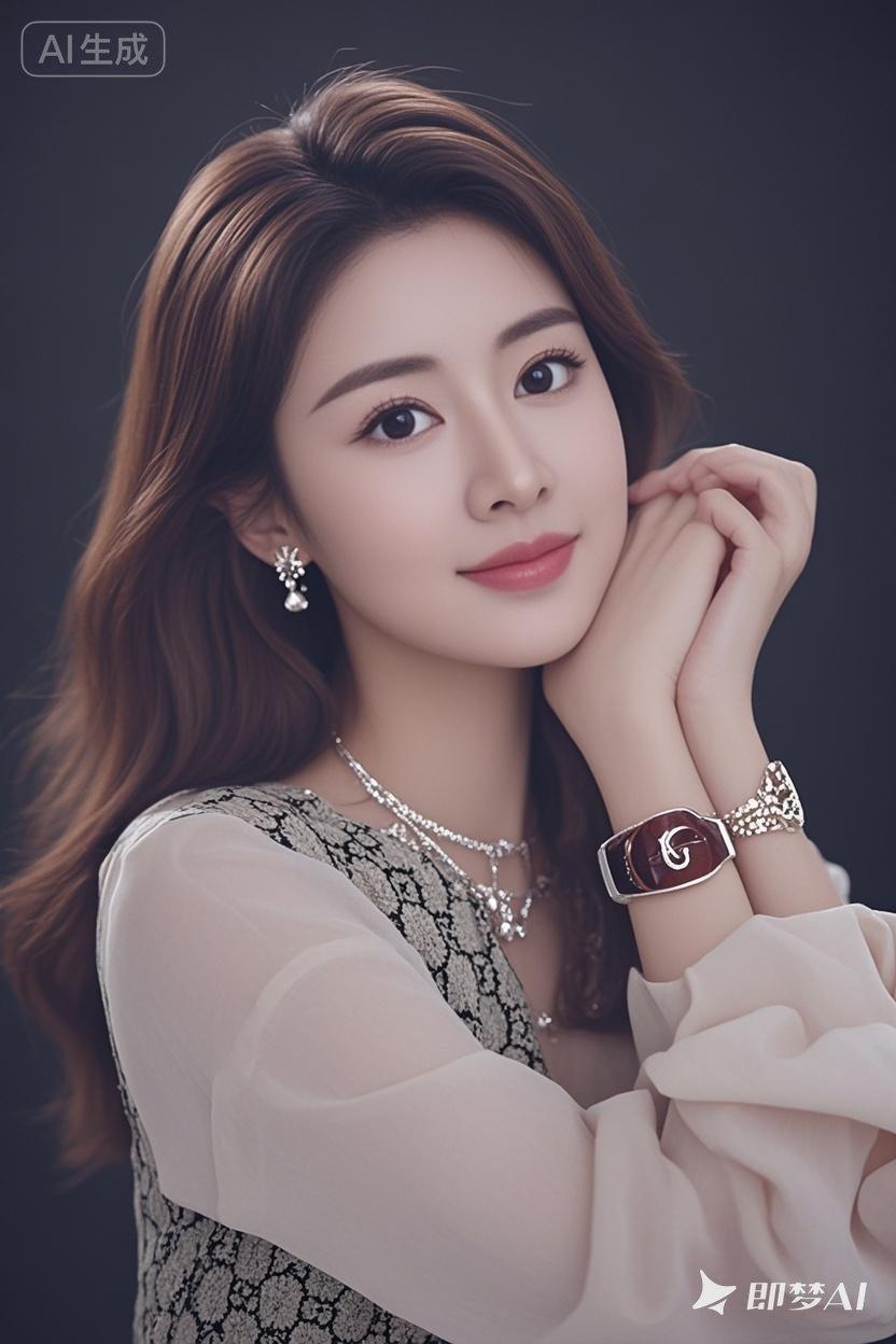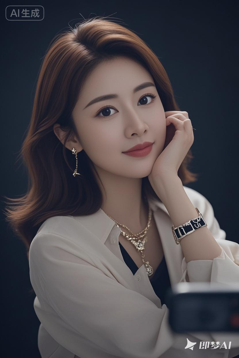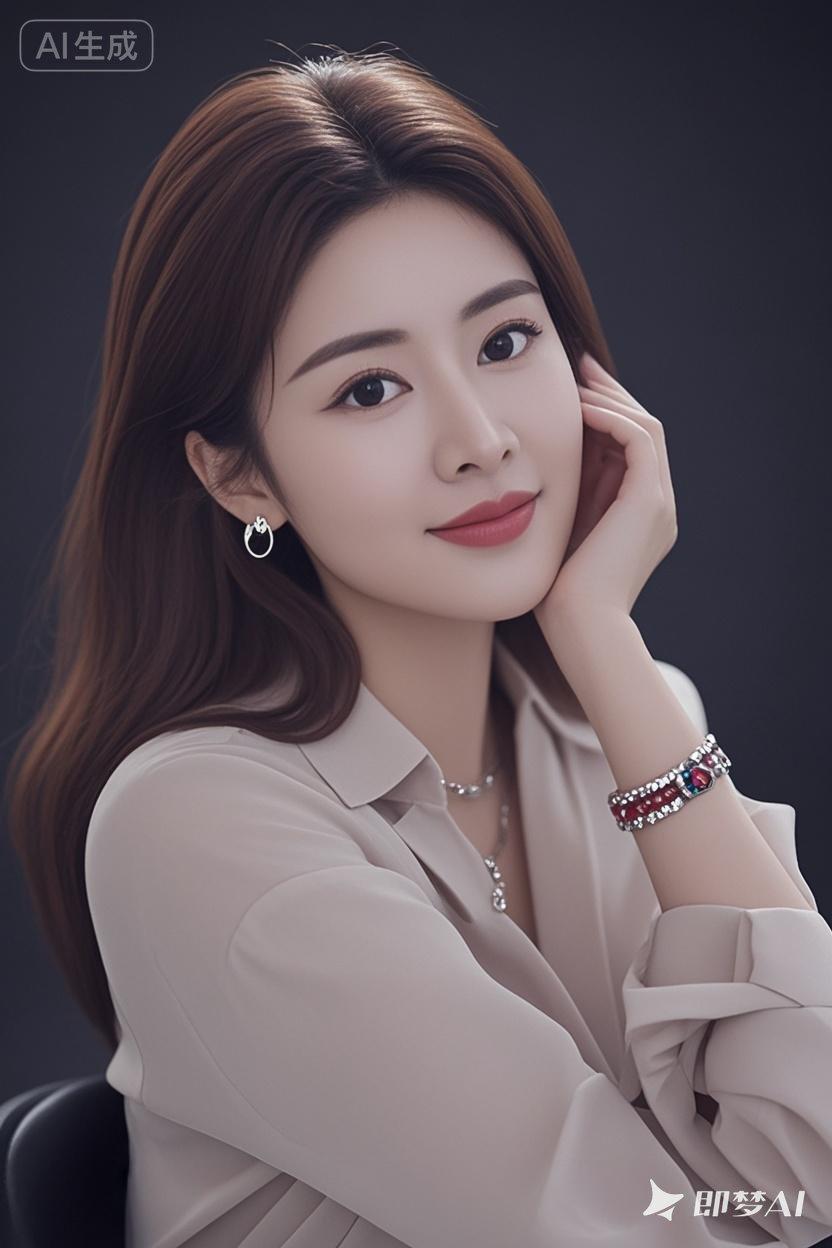 人美,棕色中长发,,大大的眼睛,双眼皮,高鼻梁,衣着时尚品牌,戴有饰品,女老板。高清,蓝光,高级,高贵,典雅,秀丽,完美,优雅