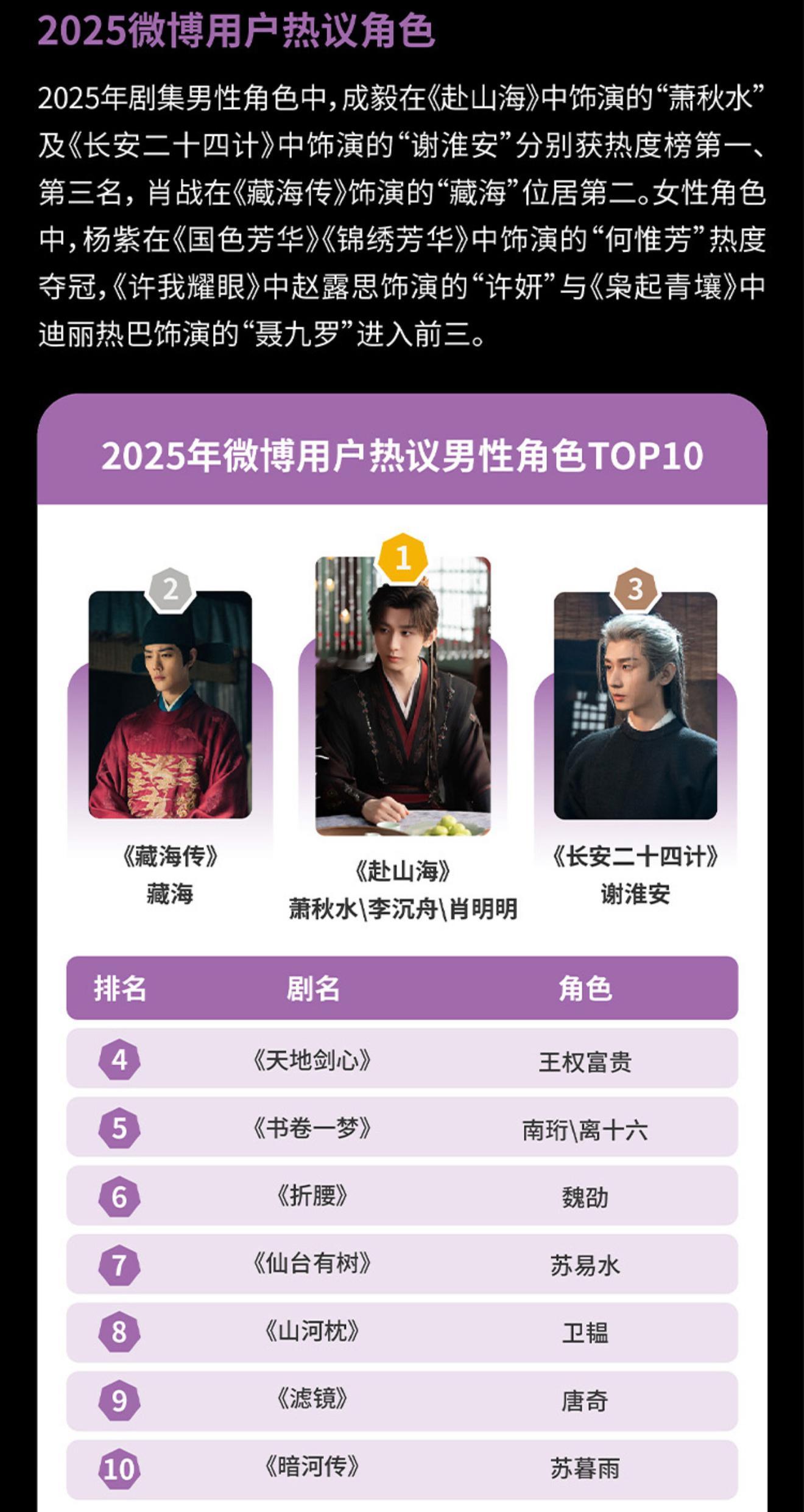 成毅三剧入选微博热议角色哇!恭喜成毅的三个角色入选了2025微博热议男性角色!