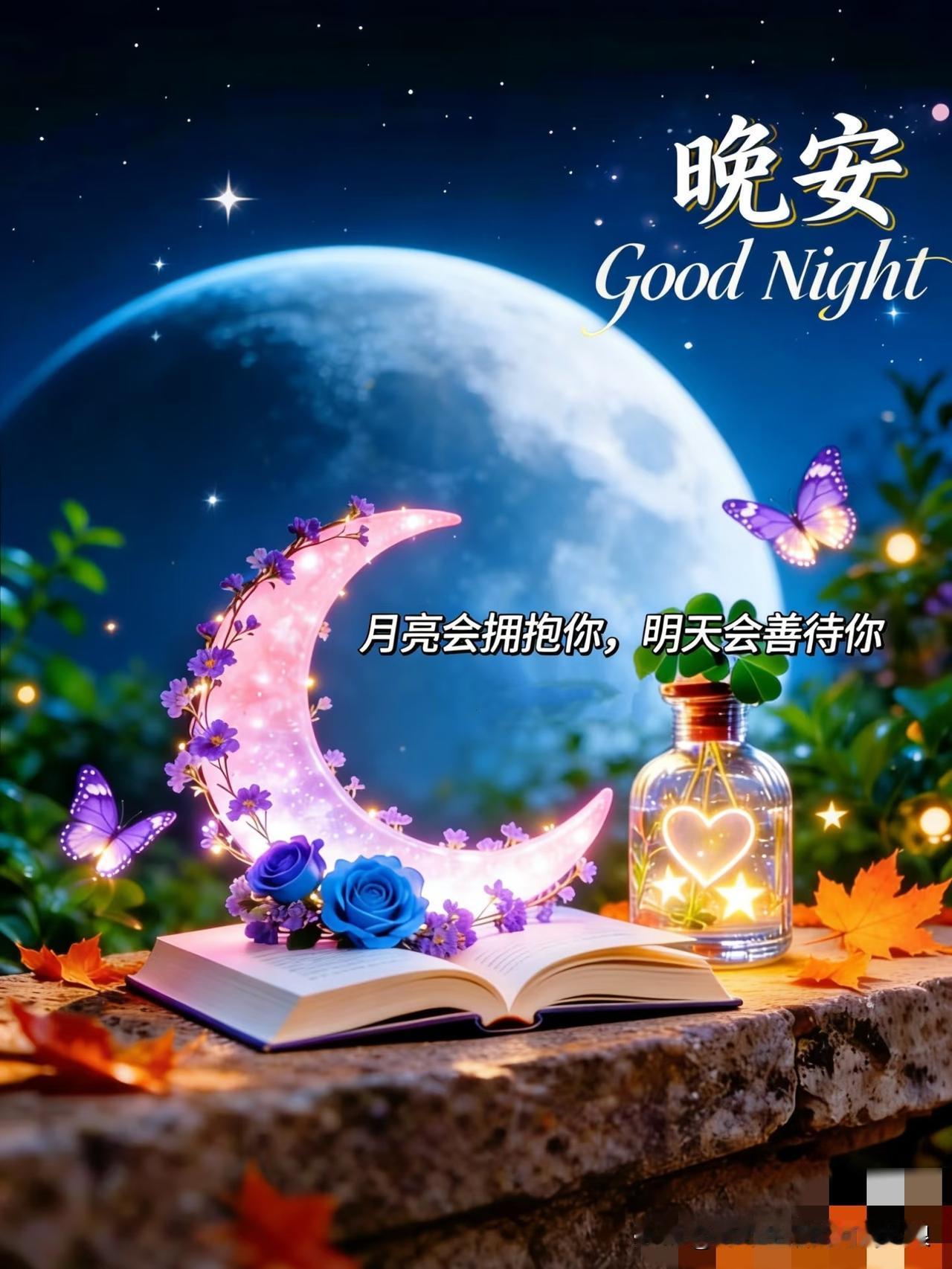 晚风收走最后一缕疲惫,星月铺好温柔的眠床,愿你关掉烦恼,卸下紧绷,一夜安睡无梦扰,清晨醒来皆美好,晚安好梦🌙 把今天的遗憾和不开心都留在门外,枕着星光和温柔入睡,愿梦里有清风绕肩,有美好相伴,晚安,好好休息~ 夜色温柔,万事皆安,愿你睡前无忧,睡中无梦,醒来有光,一夜好眠,晚安✨ 晚安心语