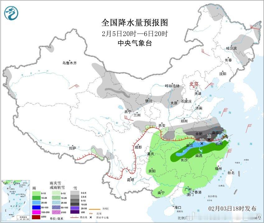 5日晚-6日,长江沿线一带降水会迅猛发展起来。目前预报,江苏南部、安徽南部、河南东南部等地部分地区有大到暴雪。湖南东北部、湖北东南部、安徽南部等地部分地区有大雨。安徽江苏上海浙江北部一带的降水肯定有,但有多少雪?目前依然有很大不确定性。雪不是说好的,要关注临近报修订。