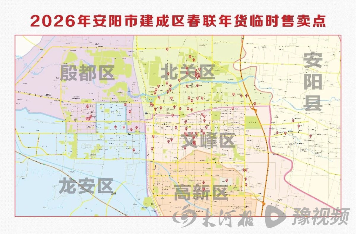 2026年马年春节将至,为满足市民群众节日需求,营造喜庆祥和的节日氛围,激发城市“烟火气”,安阳县及各区城市管理部门按照市城市管理局“集中设置、便民利民、规范管理、安全有序”的总体要求,在安阳市建成区范围内共设置春联、灯笼等年货市集86个,其中文峰区24个、北关区36个、殷都区11个、龙安区3个、高新区3个、安阳县9个。