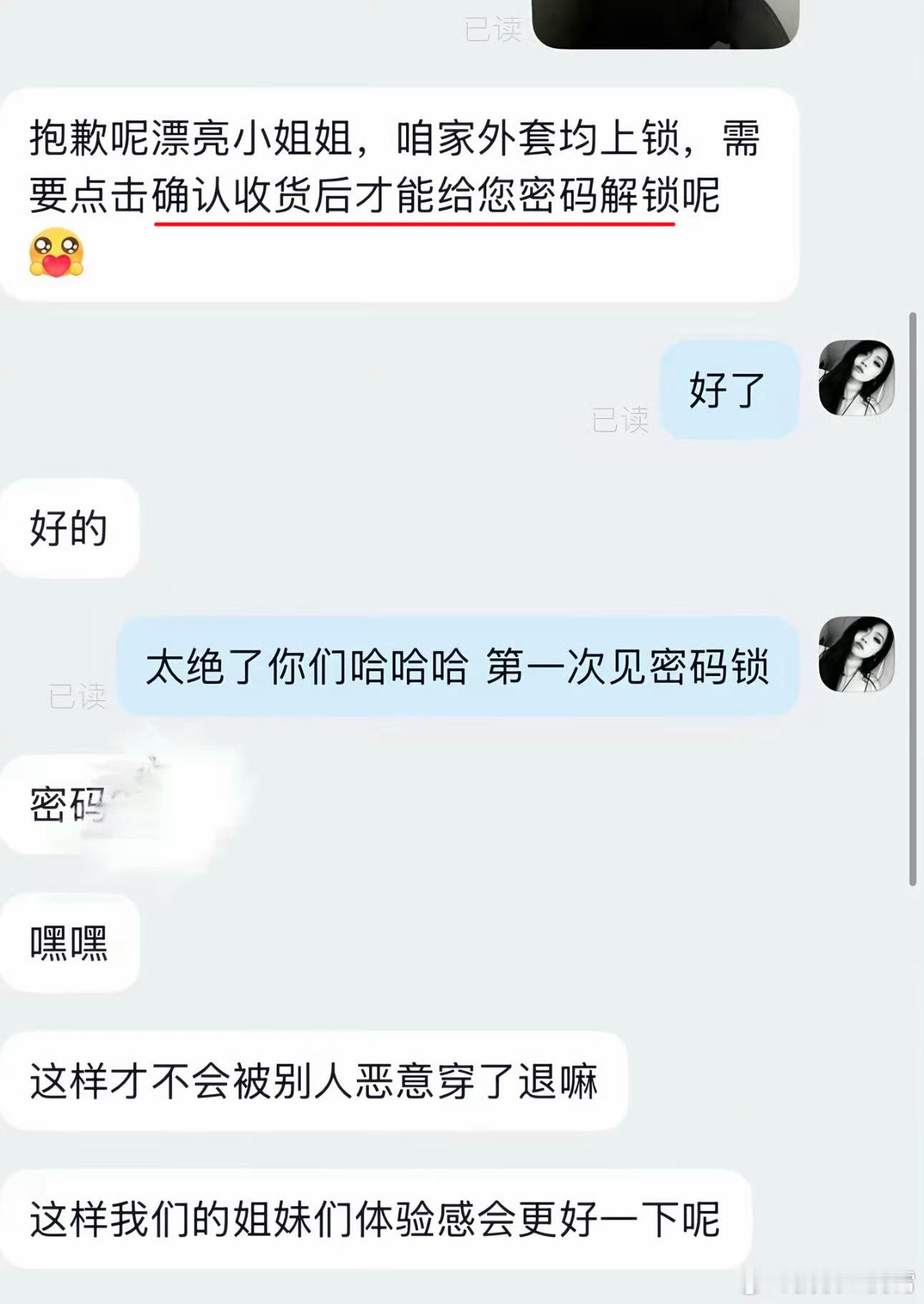 哈哈哈,确实绝,为了防止蹭穿的人恶意退货,现在已经有商家开始给衣服上锁了,确认收