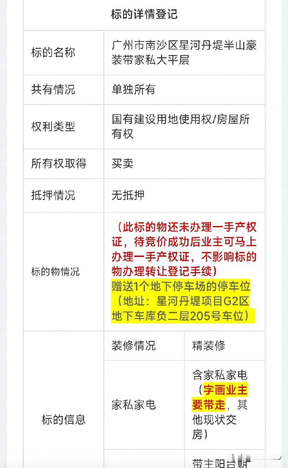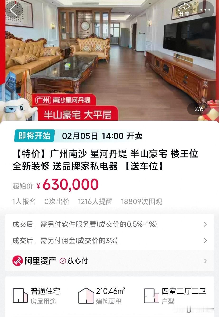 【你敢信!星河丹堤200方大平层拍卖只要63万?】好久没关注南沙的法拍了,最近被一个媒体说星河丹堤有个200方的大平层拍卖勾起了兴趣。据说这套房子装修十分不错,家电全都给你,只要63万起拍。 那么到底是不是真的这么笋呢?打开法拍软件找了一下,房子确实是套不错的房子,业主很有格调,各种红木家具。楼层不高,但是阳台风景不错。 价格也确实是63万起拍,但是呢…这个房子并不是法拍只是一个商业拍卖,来自业主委托一家公司来进行拍卖的。看到这里,其实大家应该都清楚了。 这类拍卖基本上代理公司都会设个超级低的价格吸引大家关注,再发发软文什么的宣传一波。一般都是预设好了底价,基本上不可能会捡到任何便宜的。 所以看看就好了。
