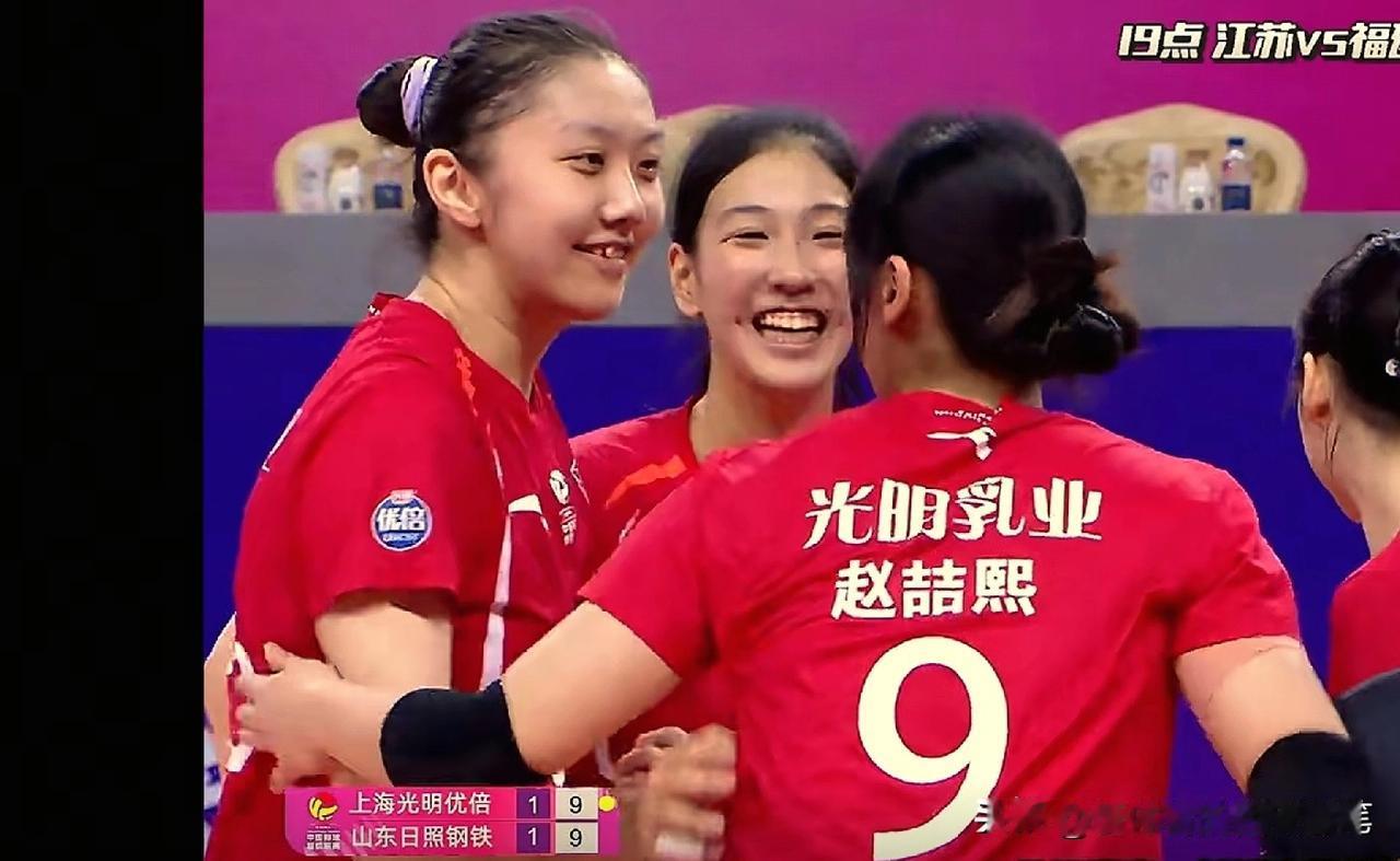 与山东女排激战的上海女排替补队员快打疯了[呲牙]。瞧,杨舒茗笑眯眼了,黄悦鑫笑开怀了,陈厚羽笑咧嘴了,就连观众席的沃隆科娃也看呆了,没想到队友打得这么好。我们看到3号位王奥芊下手快如闪电,2号位杨舒茗扣球力量猛如炮弹,黄悦鑫跳发球也很有攻击性,自由人朱星辰更是多次高难度防守起球,为队伍创造反攻机会,替补队员在蔡斌培养下充分发挥出自身特长,真棒👍。上海江苏女排 女排联赛外援 女排替补 00后女排小将