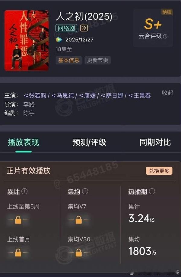 《人之初》云合集均1803w,嘲早了后面的剧集均可能还达不到1800w