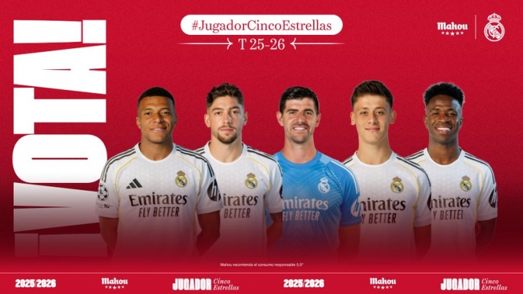 直播吧2月3日讯皇马官方公布1月队内最佳候选,姆巴佩、巴尔韦德、库尔图瓦、居莱尔、维尼修斯获提名。