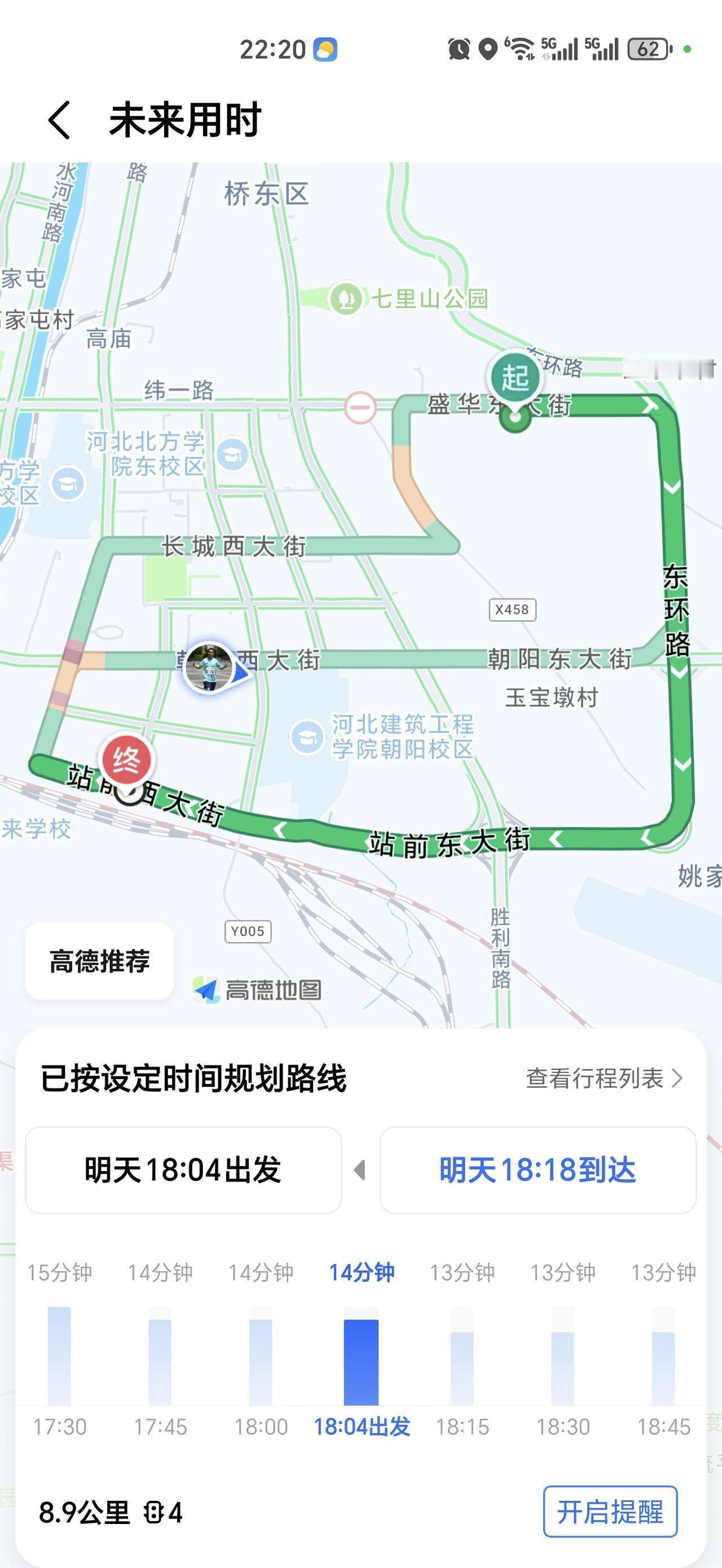 即将有出行的计划,荣耀MagicOS 10,YOYO建议中绑定12306之后,能够自动调用出行信息,并通过关联服务卡片,提醒出行的时间和待出行车次信息,这次居然还同步推送出行导航,连目的地都已经帮助我设置好,点选之后自动进入高德导航APP,未来用时页面,支持已按设定时间规划路线,高德打车也是蛮方便的 畅聊数码新品 数码资讯
