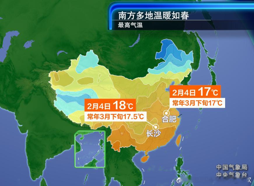【气温】明天立春,长江中下游暖如3月下旬的春分,长沙18℃、合肥17℃、上海17℃。明天京津冀也很温暖,北京预计最高12℃将是今年首次上10℃。今天首次上10℃的天津,明天可能再创新高。不过这样偏暖的格局不会持续太久,明天就有部分冷空气影响东北,2月5-7日冷空气主体南下,可能形成一轮寒潮过程。