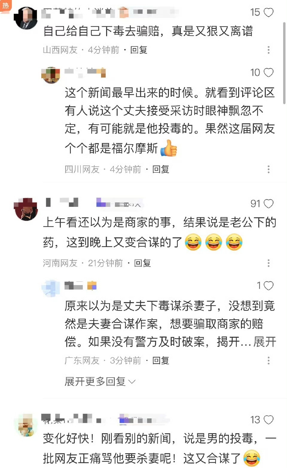 这对夫妻真是狠人,还要琢磨下毒剂量多少,稍有不慎直接“归西”。从该事件发展脉络来看,从“夫妻网购娃娃菜吃中毒”的最初报道,到某些媒体单方面采访夫妻“诬陷商家”的第一次反转,再到“夫妻合谋下毒”骗局曝光的再次反转。