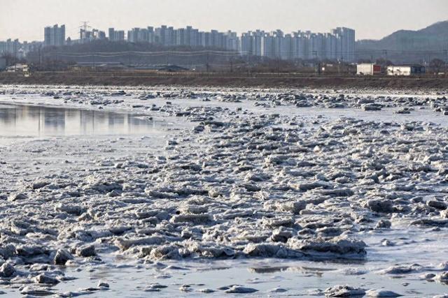 这是1月25日在韩国汉江京畿道流域拍摄的浮冰。新华社发(全休相摄)