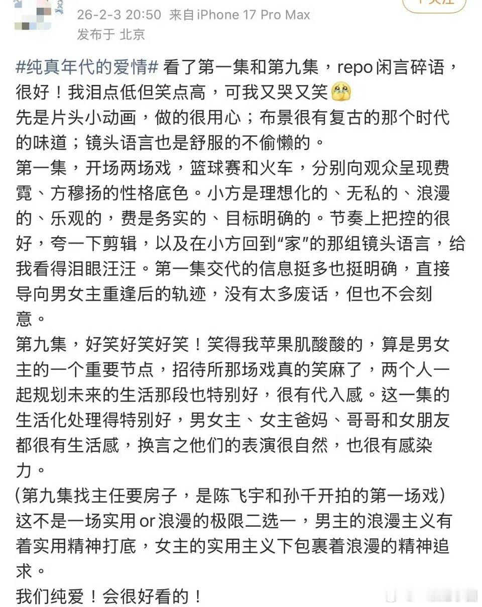 陈飞宇 孙千《纯真年代的爱情》看片repo!嘻嘻,我们小纯爱貌似挺吸引人的