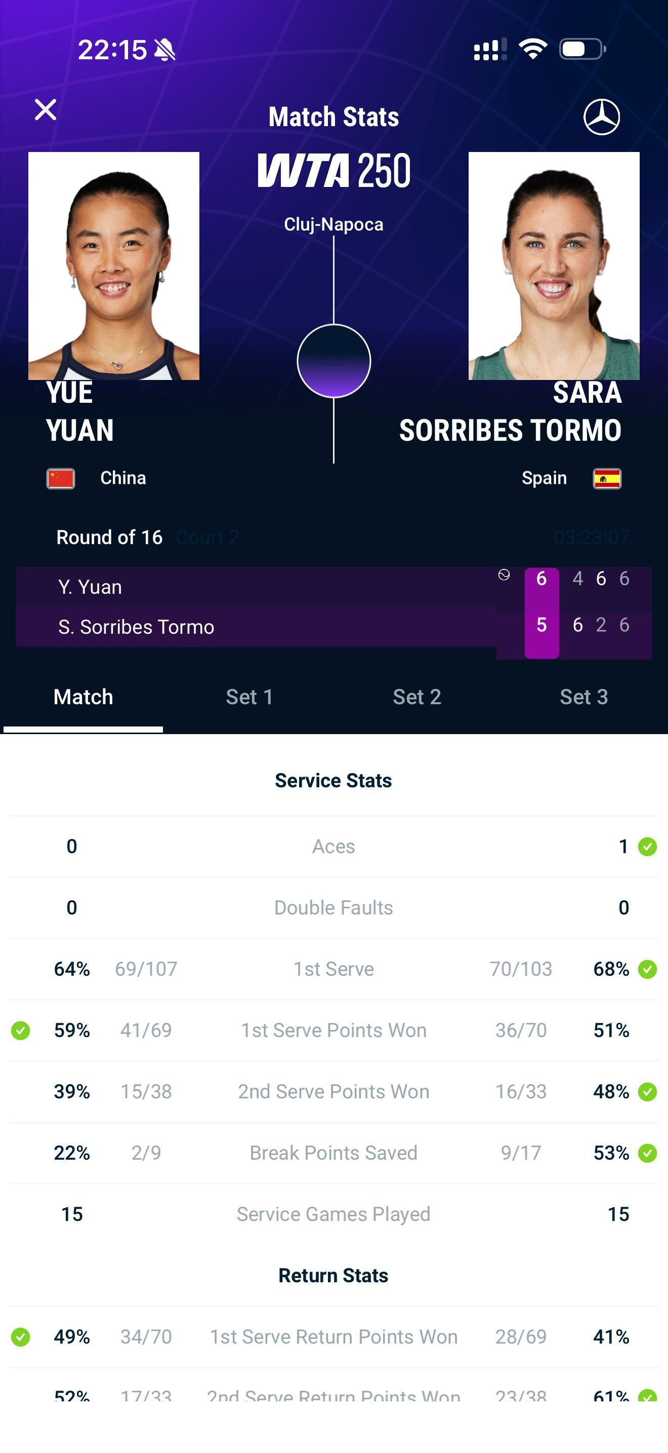 WTA克卢日纳波卡250赛第二轮,袁悦遭遇大魔王托莫,两人大战斗3小时23分钟,浪费3个赛点,被破掉发球胜赛局,最终袁悦以4比6、6比2、7比6逆转对手,打进8强。wta