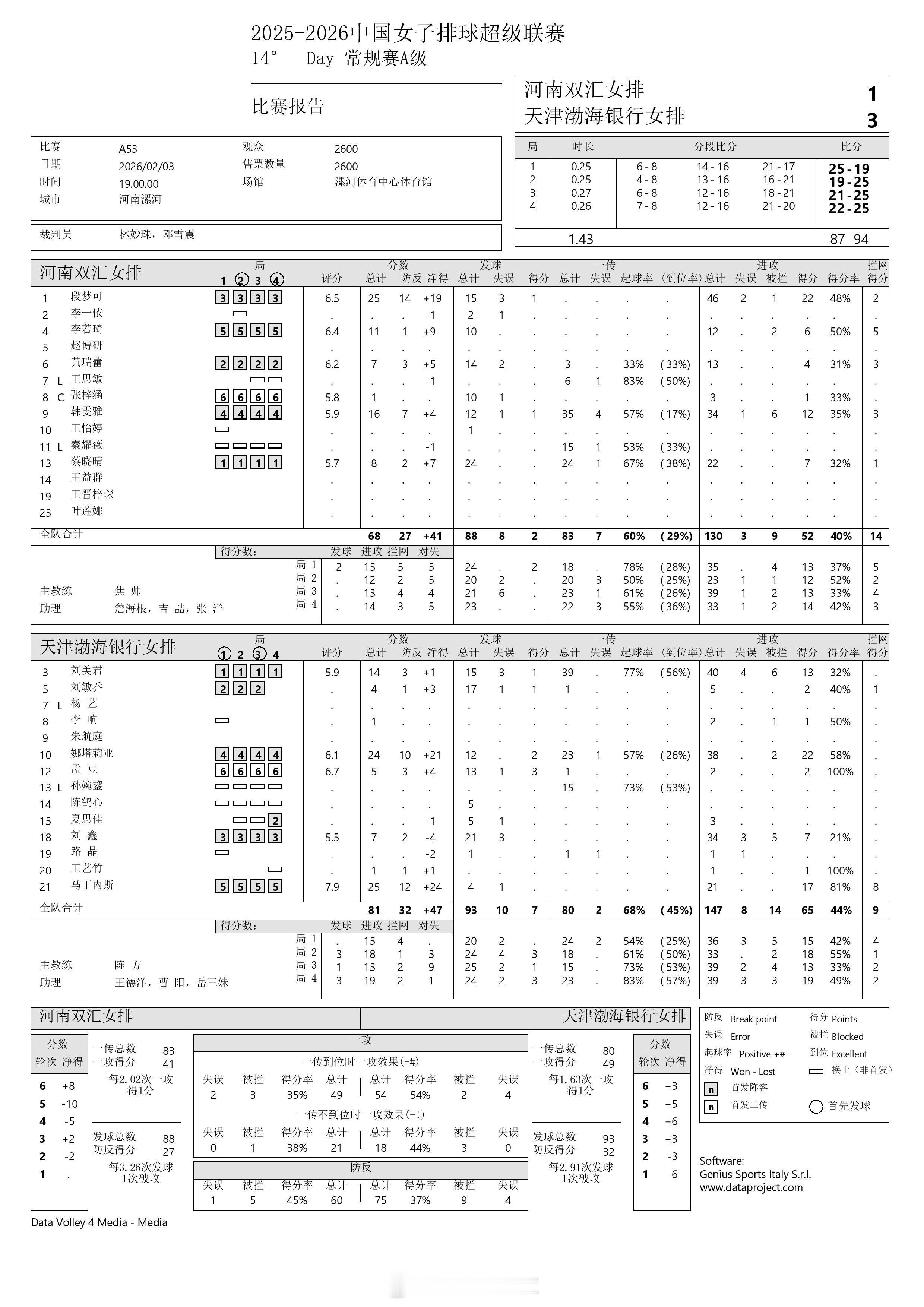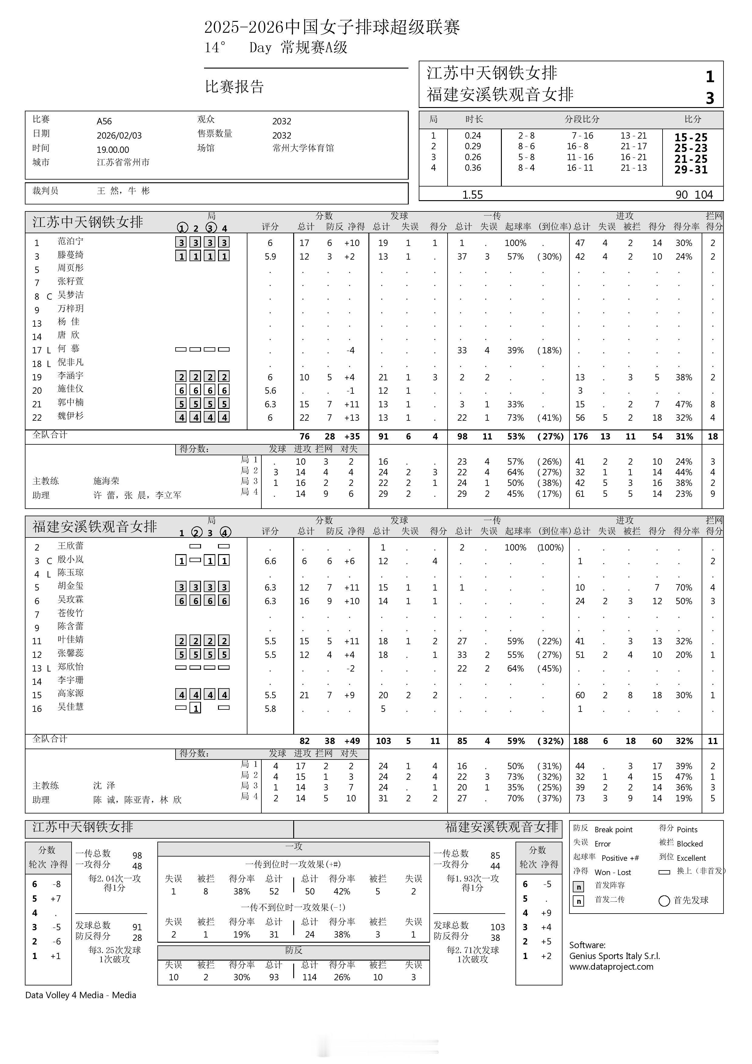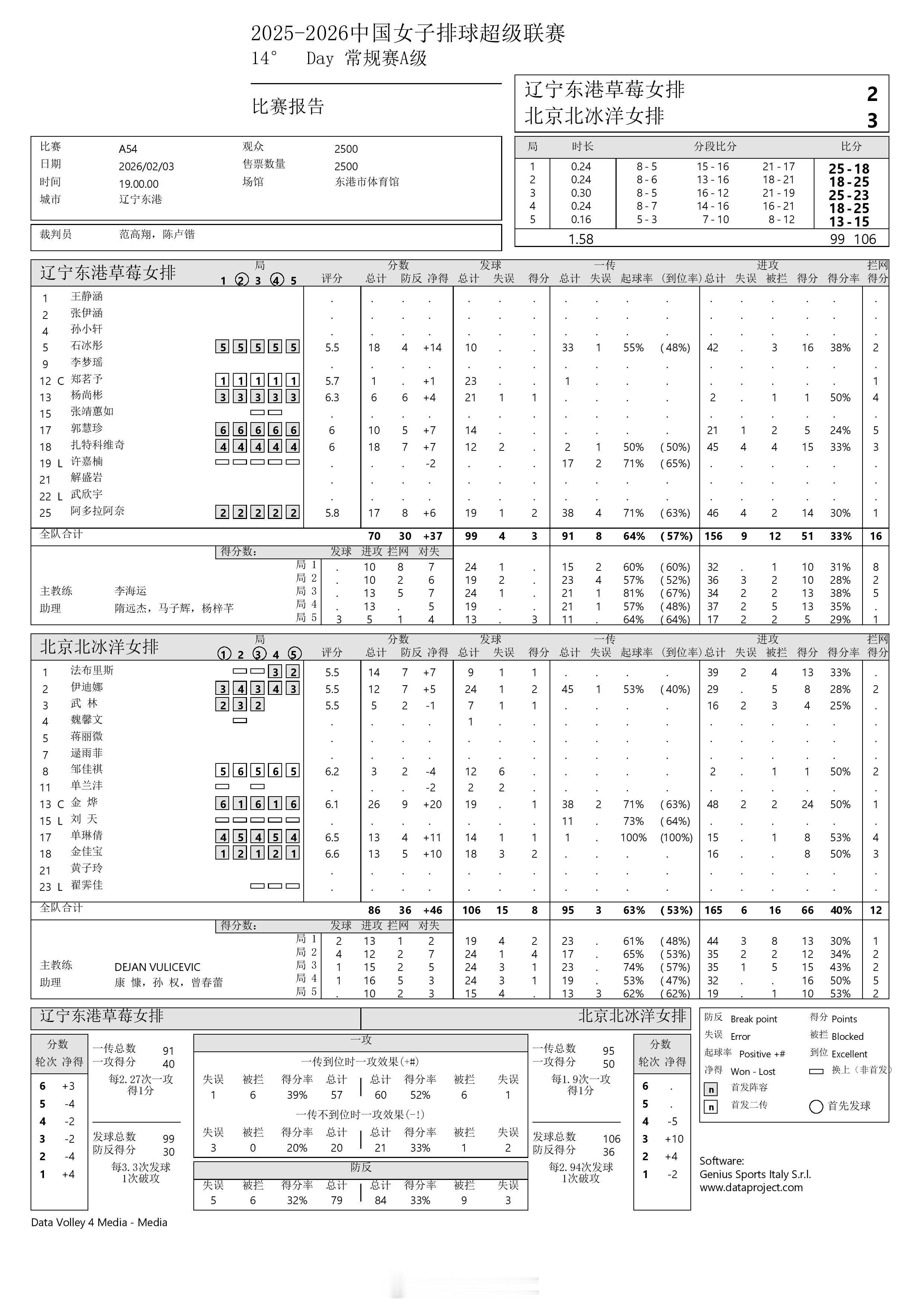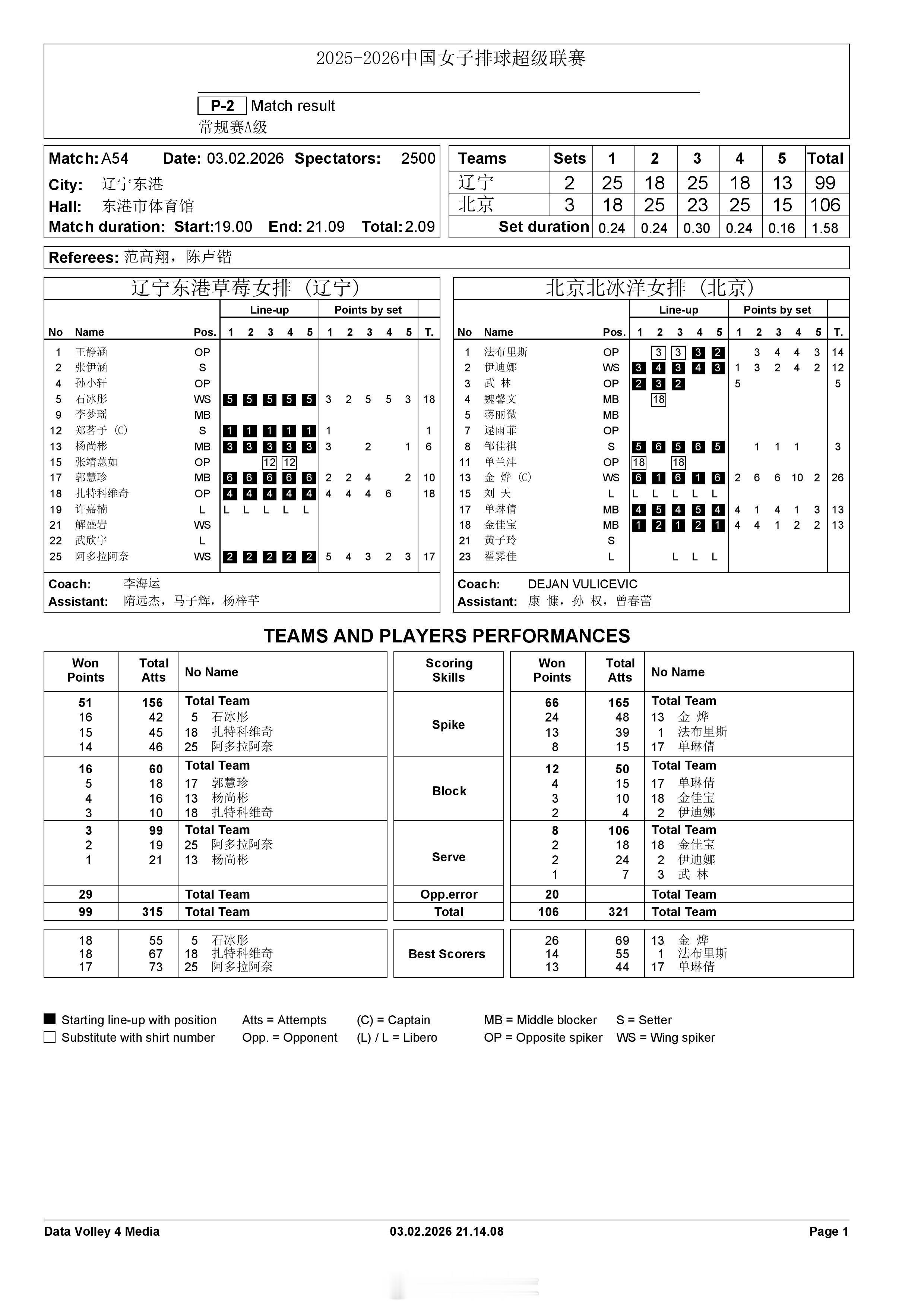 2025-2026中国女排超级联赛 A级常规赛最后一轮今晚已结束的3场比赛的P2表和比赛报告表。