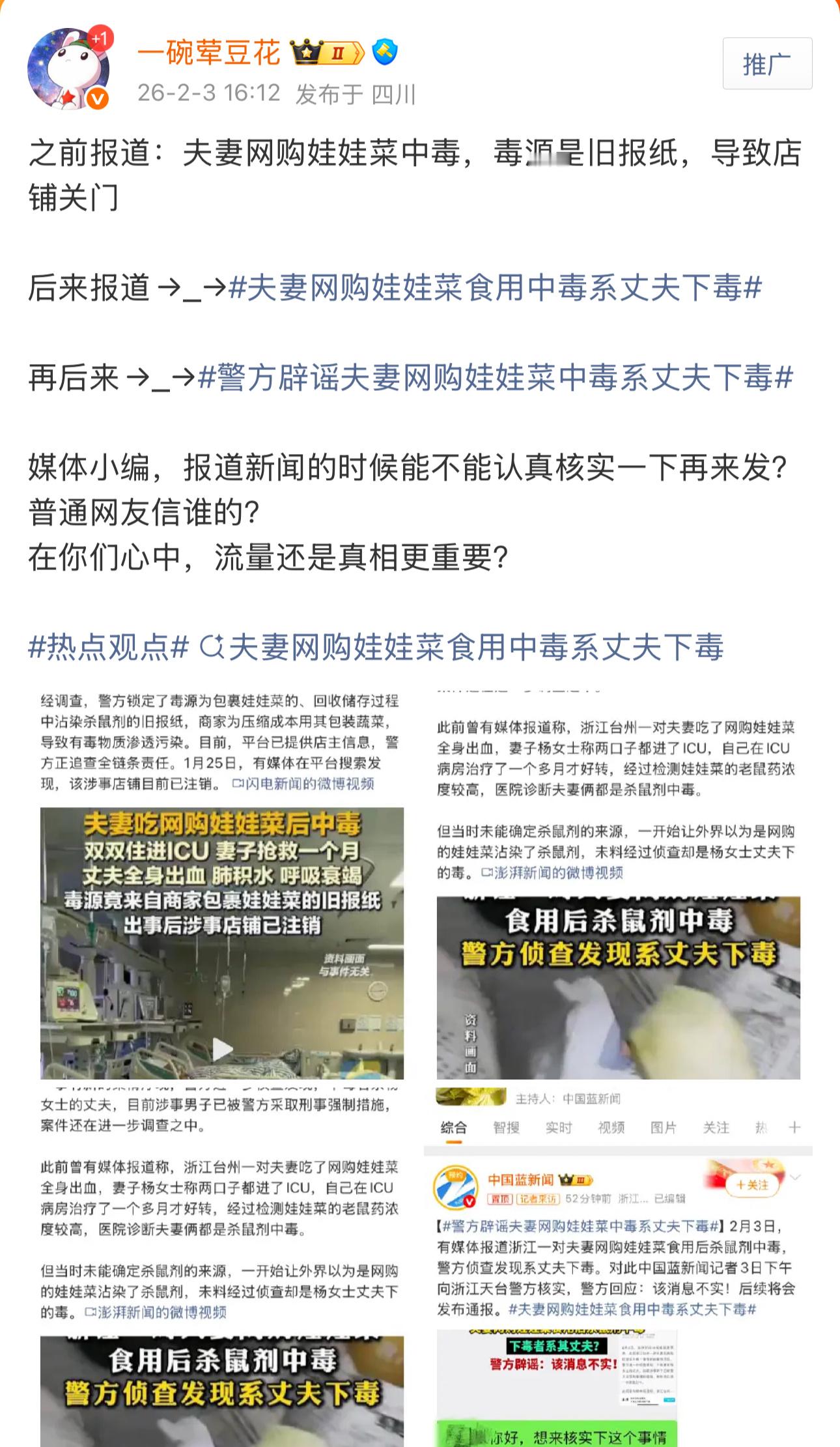 警方通报夫妻网购娃娃菜食用中毒吃娃娃菜中毒夫妻均被刑拘热点观点 警方通报夫妻网购娃娃菜食用中毒