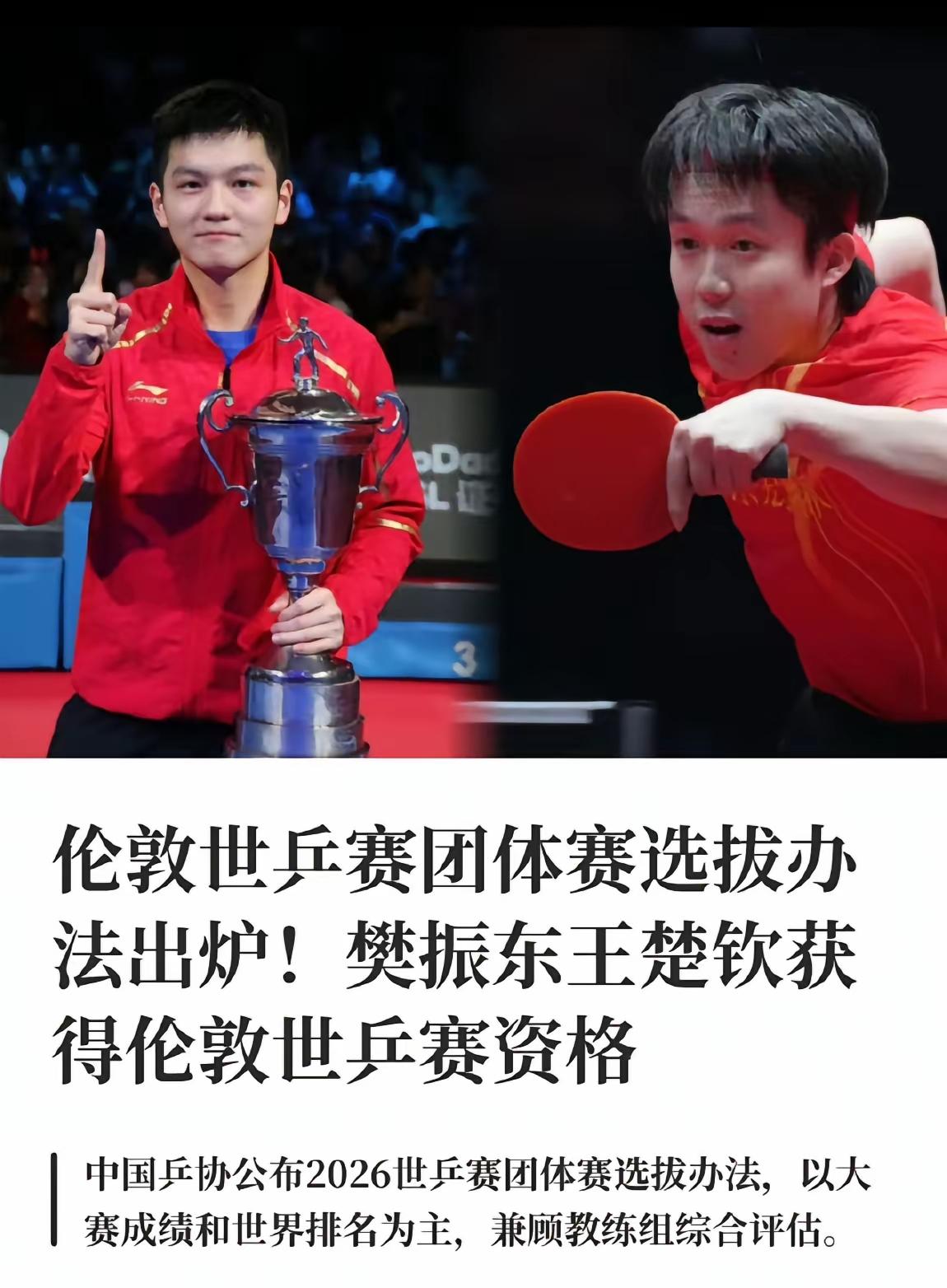 樊振东回归国乒,令人期待! 伦敦世乒赛团体赛选拨队员办法出炉,办法中的一句全运冠