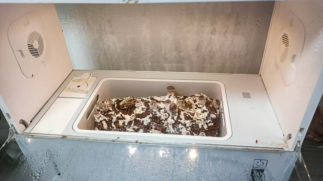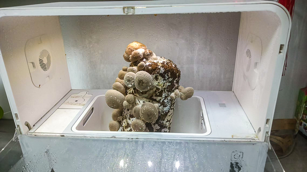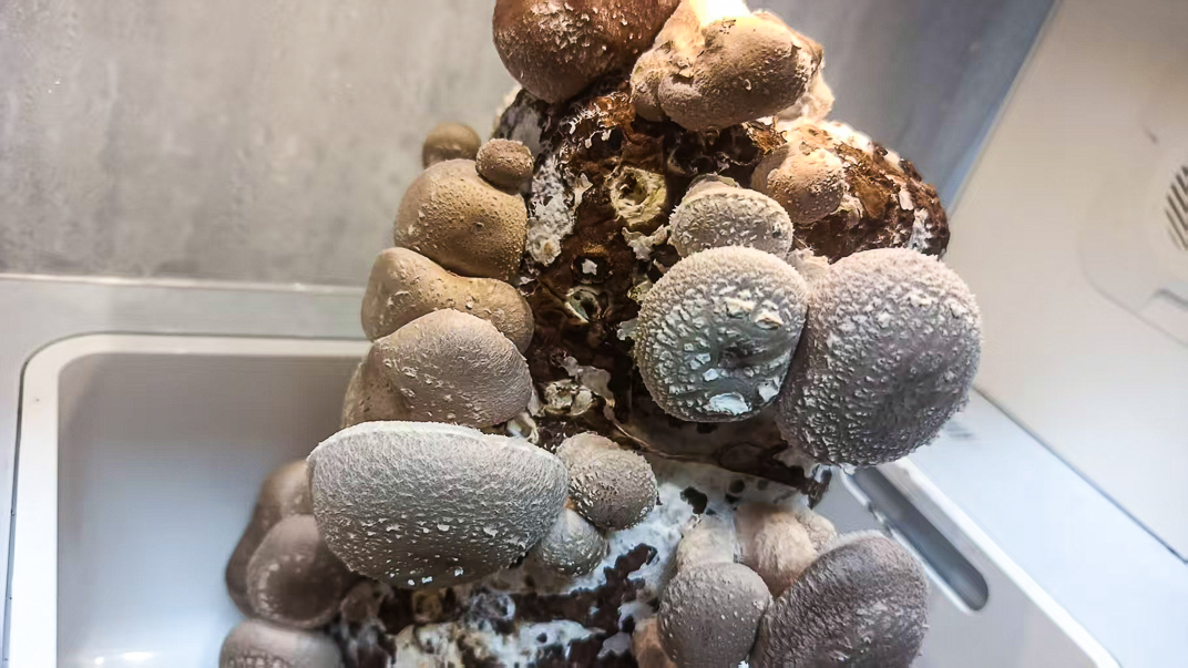 我们选的香菇菌包,解锁了“见证成长”的快乐。一周左右,菌包上就冒出了密密麻麻的小菇蕾,棕褐色的小点一天天变大,每天都有新变化。孩子每天都蹲在生态箱前观察、打卡,看着菇蕾舒展成饱满的菌盖,那种期待与惊喜,是电子产品给不了的。