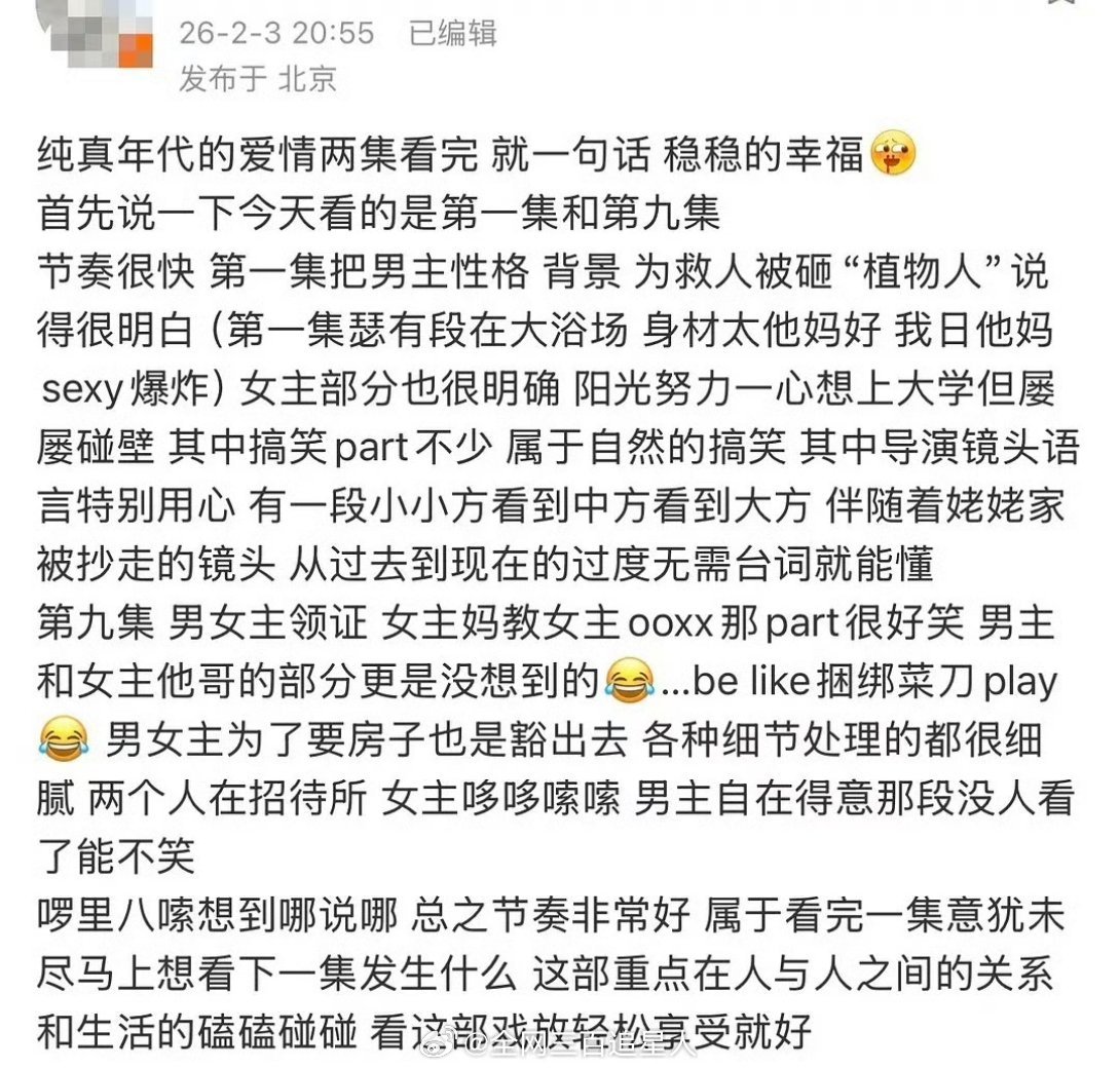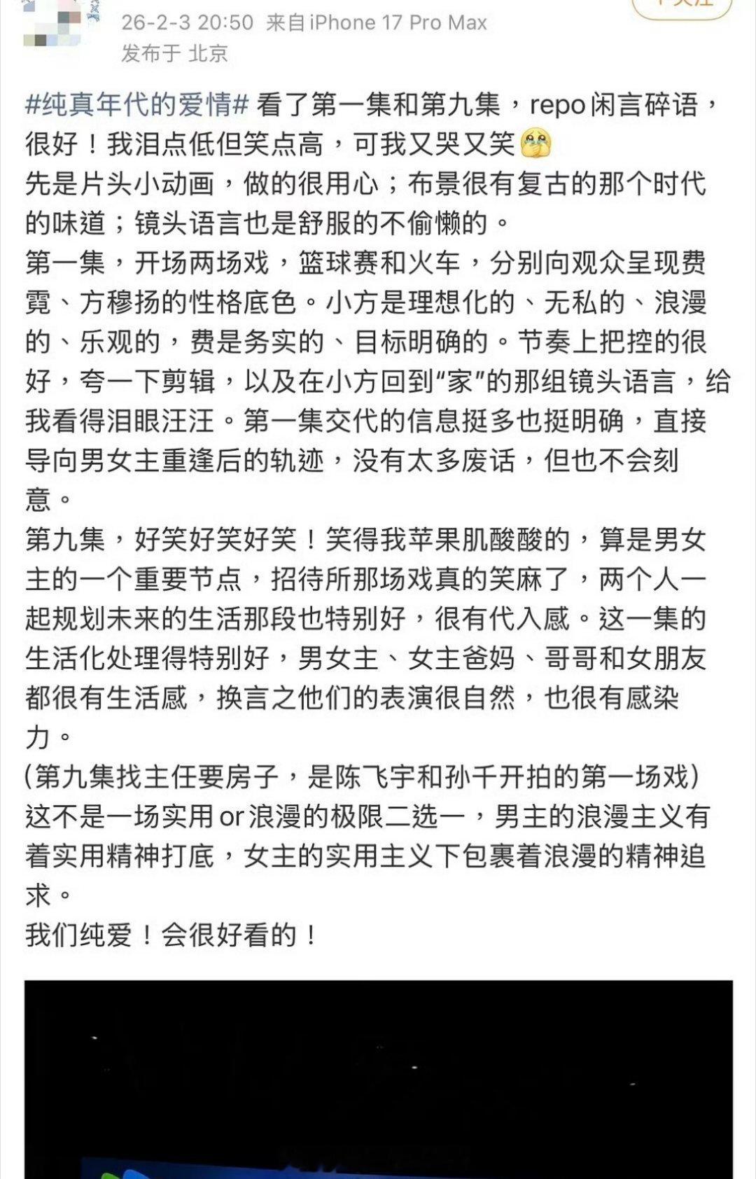 陈飞宇孙千纯真年代的爱情好像很不错,repo都在夸,最搞笑的一句就是“阿瑟多演傻