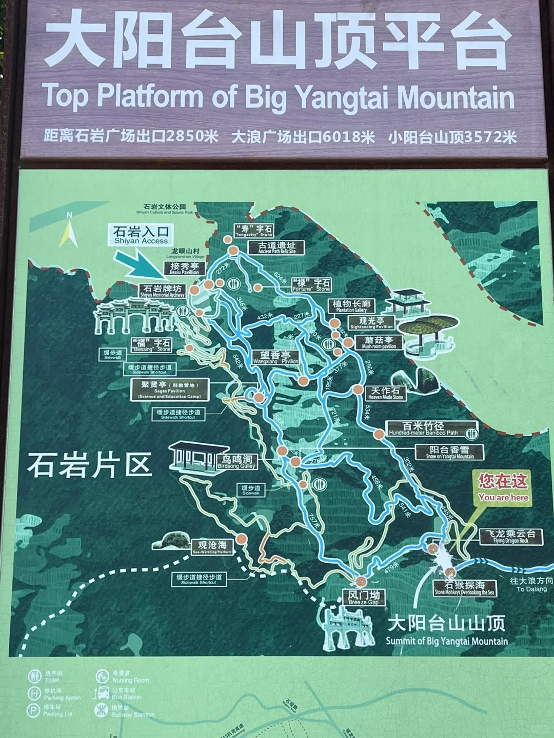 带小朋友的建议从石岩出入口上,进门往右手边直走,有盘山公路可以直达大阳台山山顶。
