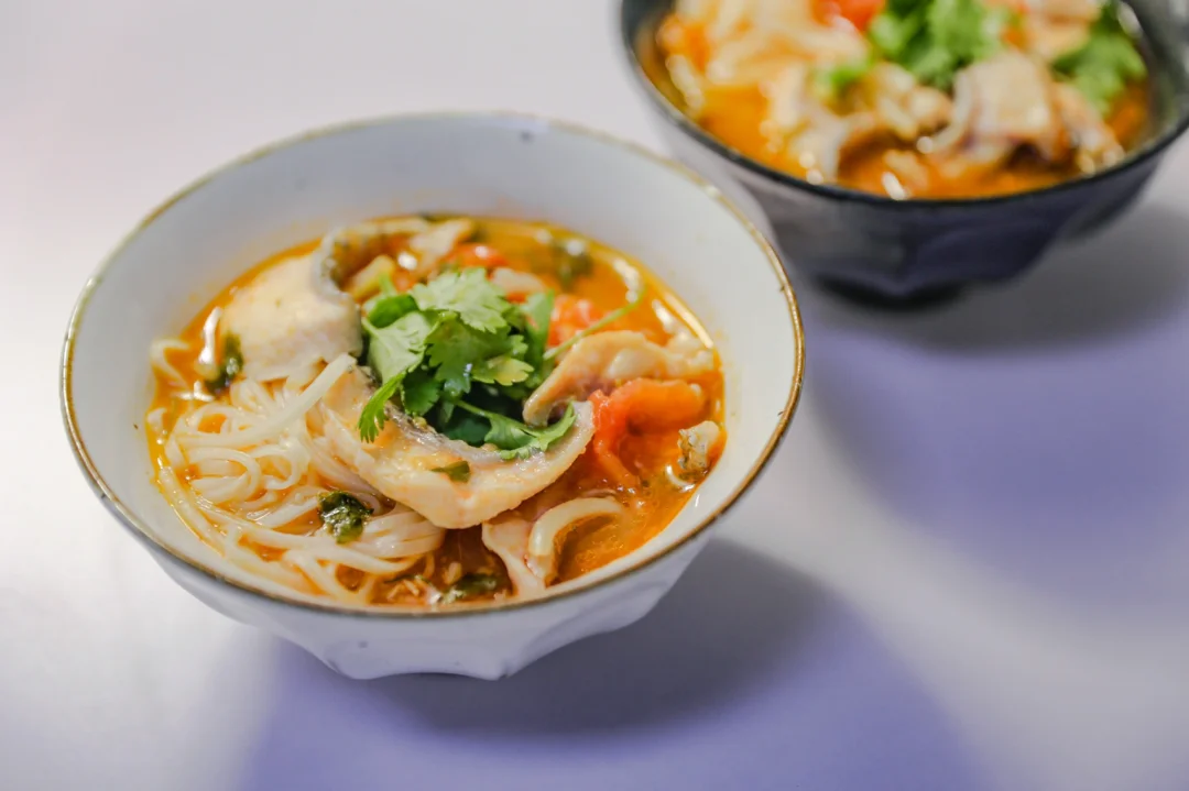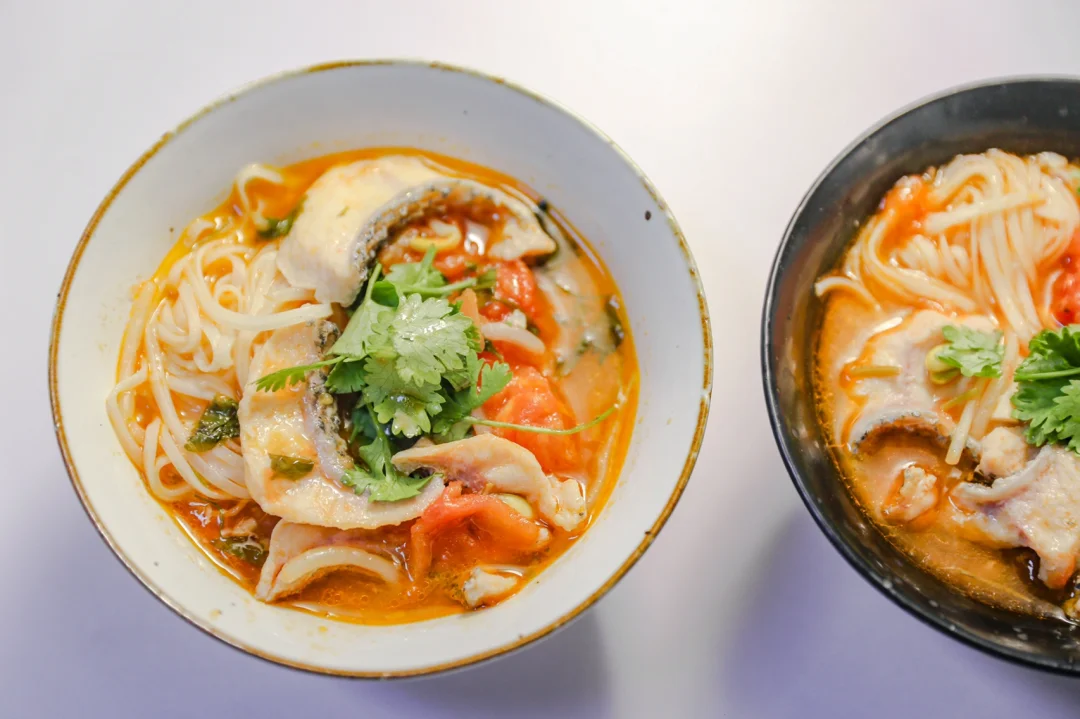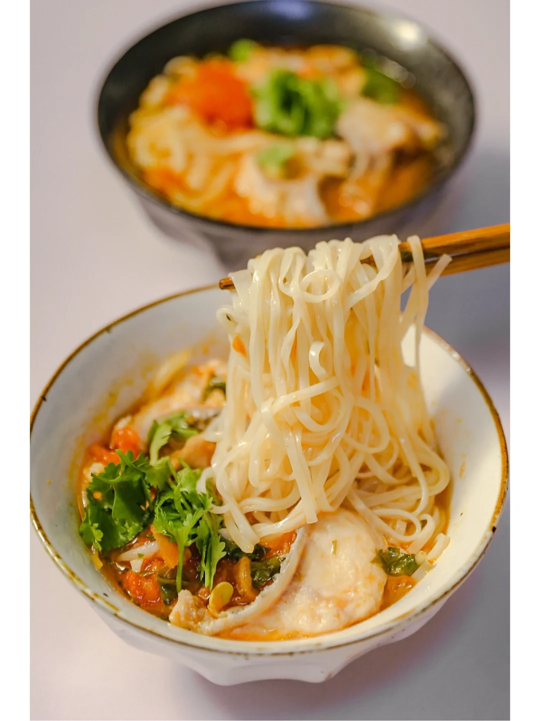 [草莓R]面条煮熟之后,浇上番茄鱼片汤即可完成。