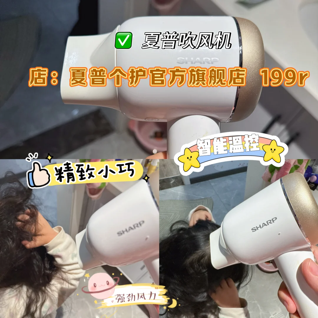 之前吹头发像打仗,孩子总躲。换「夏普官方店」这款后,温柔风量却干得超快,智能温控再也不怕烫到她细软发丝。现在洗完头,她主动喊:“妈妈,用粉色吹风机!”