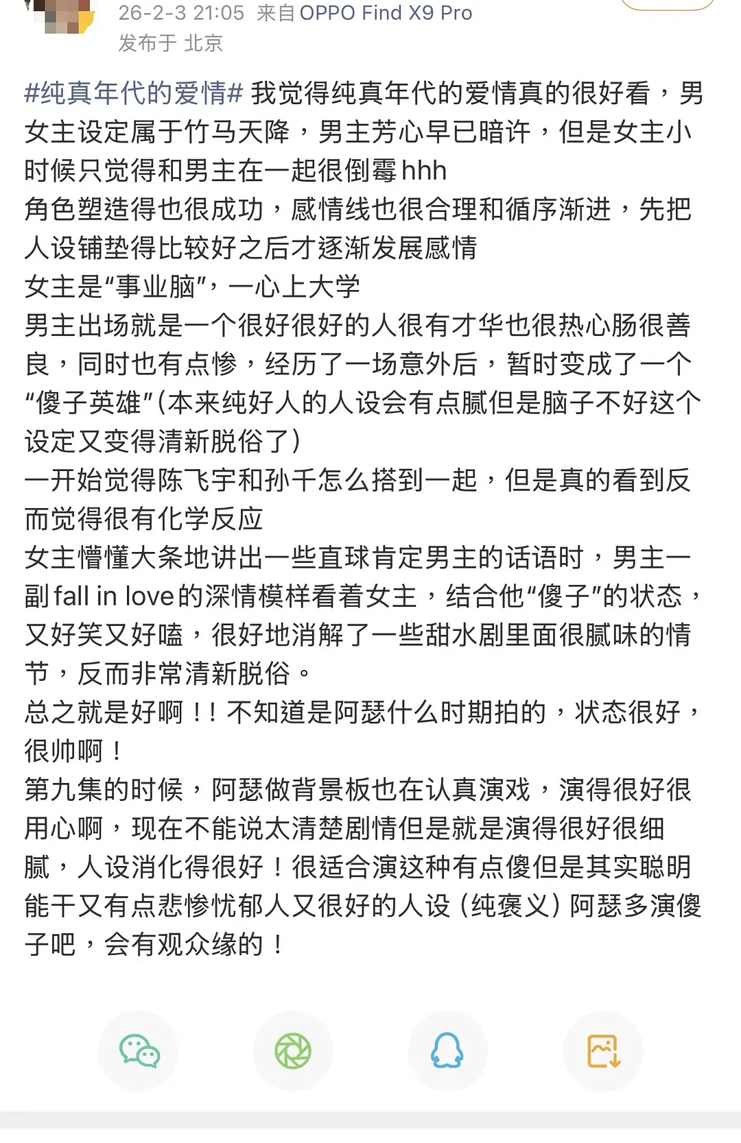 陈飞宇纯真年代的爱情超前看片的反馈都很不错的