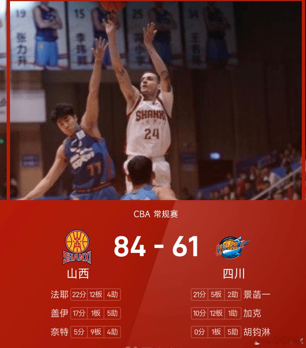 02月03日讯 25/26赛季CBA 常规赛,四川对阵山西。双方全场战罢,四川61-84不敌山西。法耶砍下全场最高的22分12板4助,率领山西成功取胜。