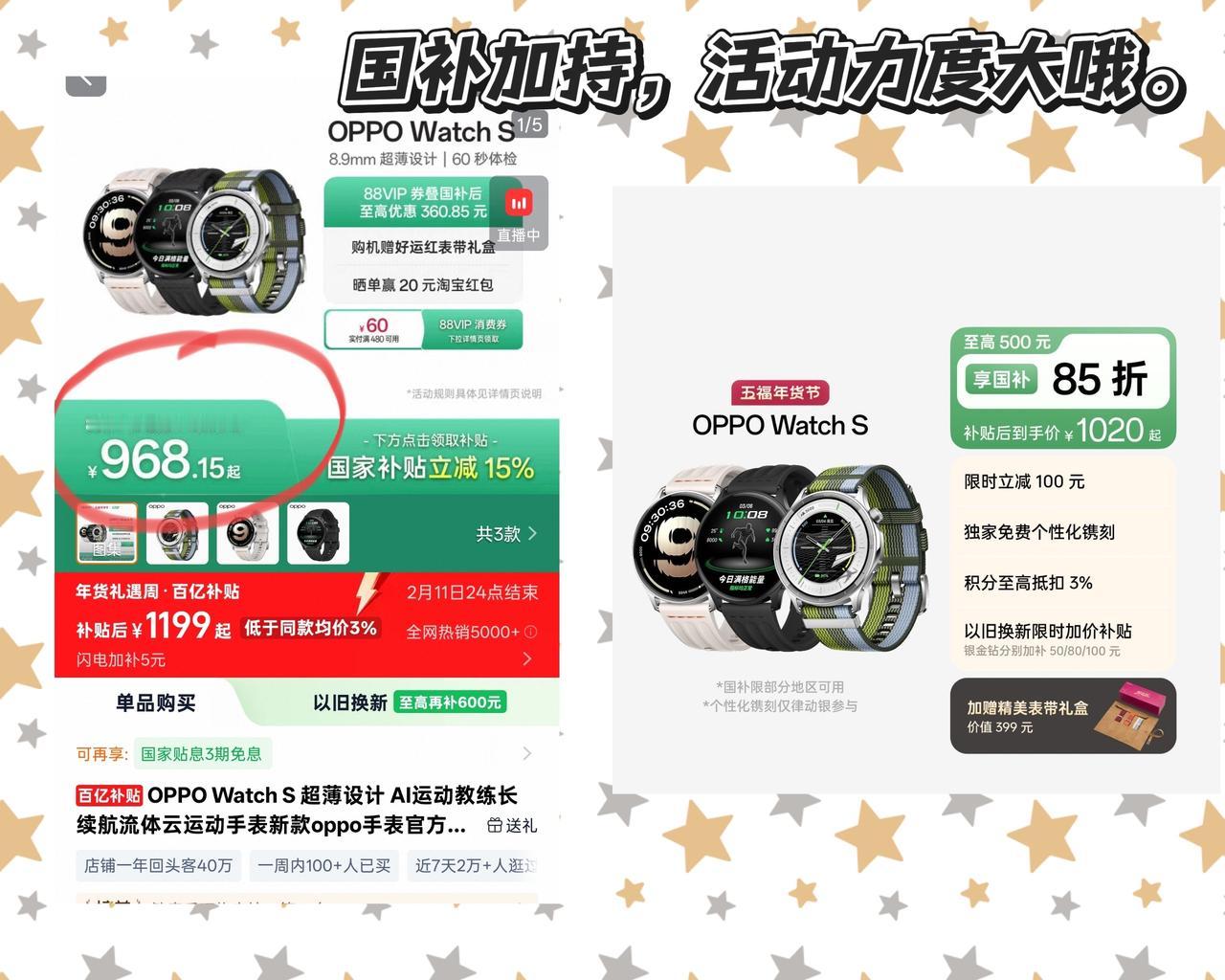 OPPO手表年货节羊毛薅疯😍!手慢无攻略速码~ 首先就是优惠力度哦,部分地区有国补加持👏,直接85折😱!省下的钱够囤几副表带,这波政策红利不冲血亏! 买OPPO Watch S送限定红表带礼盒🎁!新年开运神器+1🎉,这款手表拥有海量功能!IP68防水助力极致运动体验;强大续航做到10天不充电;运动/睡眠/支付全搞定,健康管家时刻在线💪~ OPPO Watch X2/X2 Mini购机即赠氟橡胶/硅胶表带!1.5英寸曲面屏丝滑到上头😍,100+运动模式+eSIM独立通话📞,跑步甩掉手机超自由!Mini版极致轻薄,小手腕狂喜🥰! 重点📌:国补限时+赠品限量,堪称是最值得入手的时刻🤩!特别是现在冲还能蹭新年好运哦,喜欢的宝子冲~