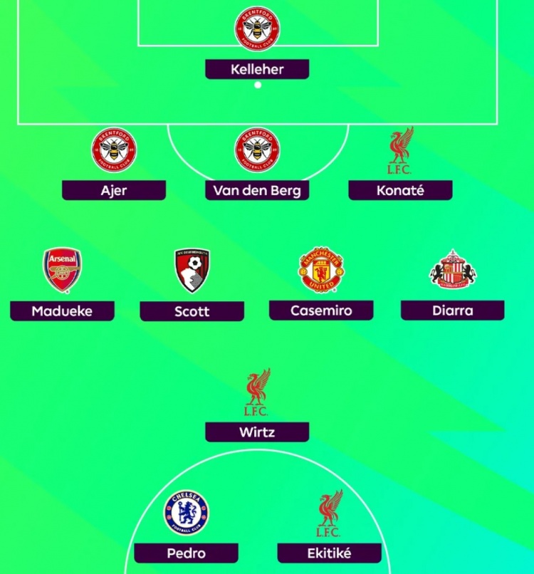 前锋:维尔茨(利物浦)、若昂·佩德罗(切尔西)、埃基蒂克(利物浦)