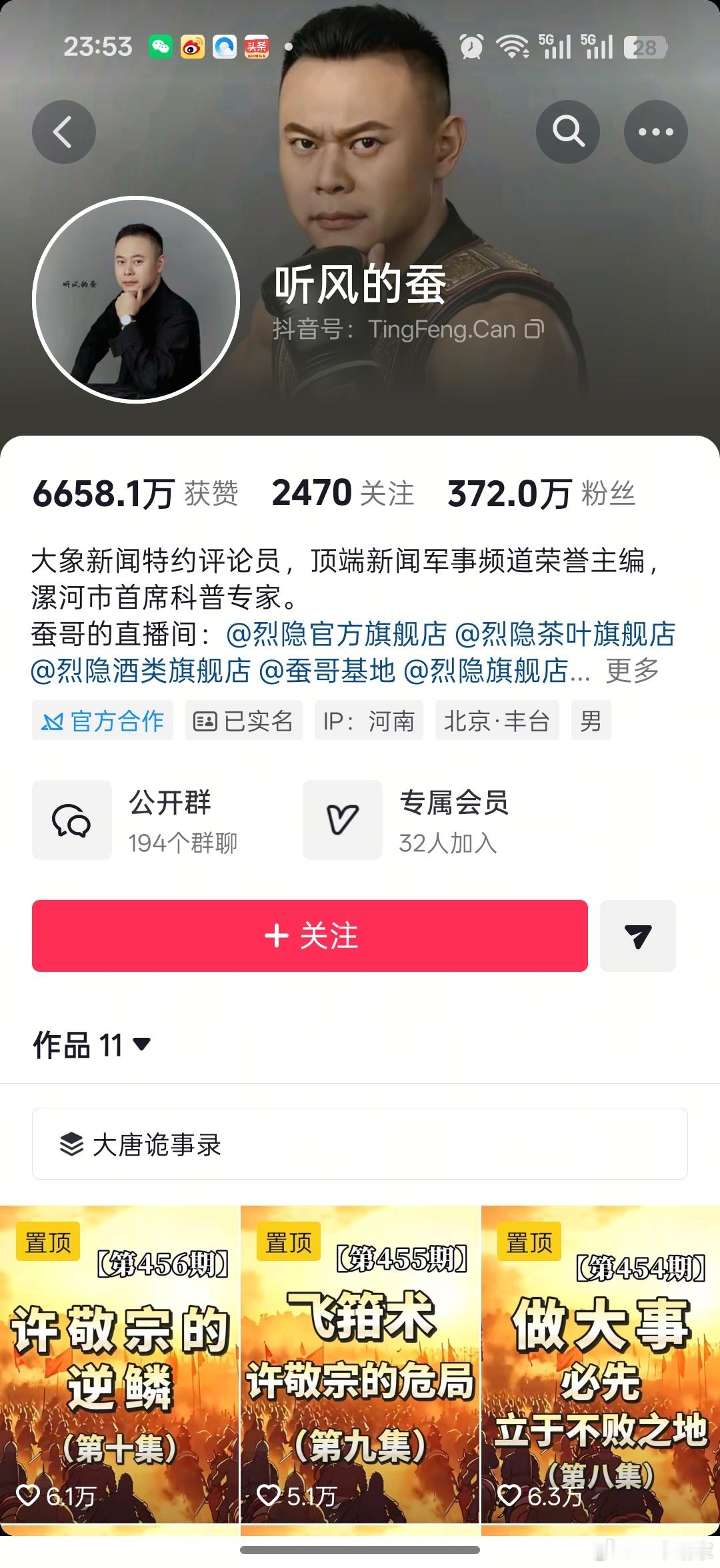 听风的蚕疑被平台强制清粉,由原来的1900万掉到现在的372万,有粉丝被取关几次,不知出了什么状况……