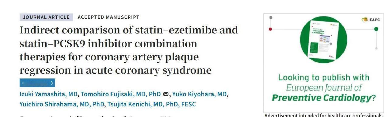 2026年1月,欧洲预防心脏病学杂志最新荟萃分析直击要害:确诊冠心病尤其是急性心