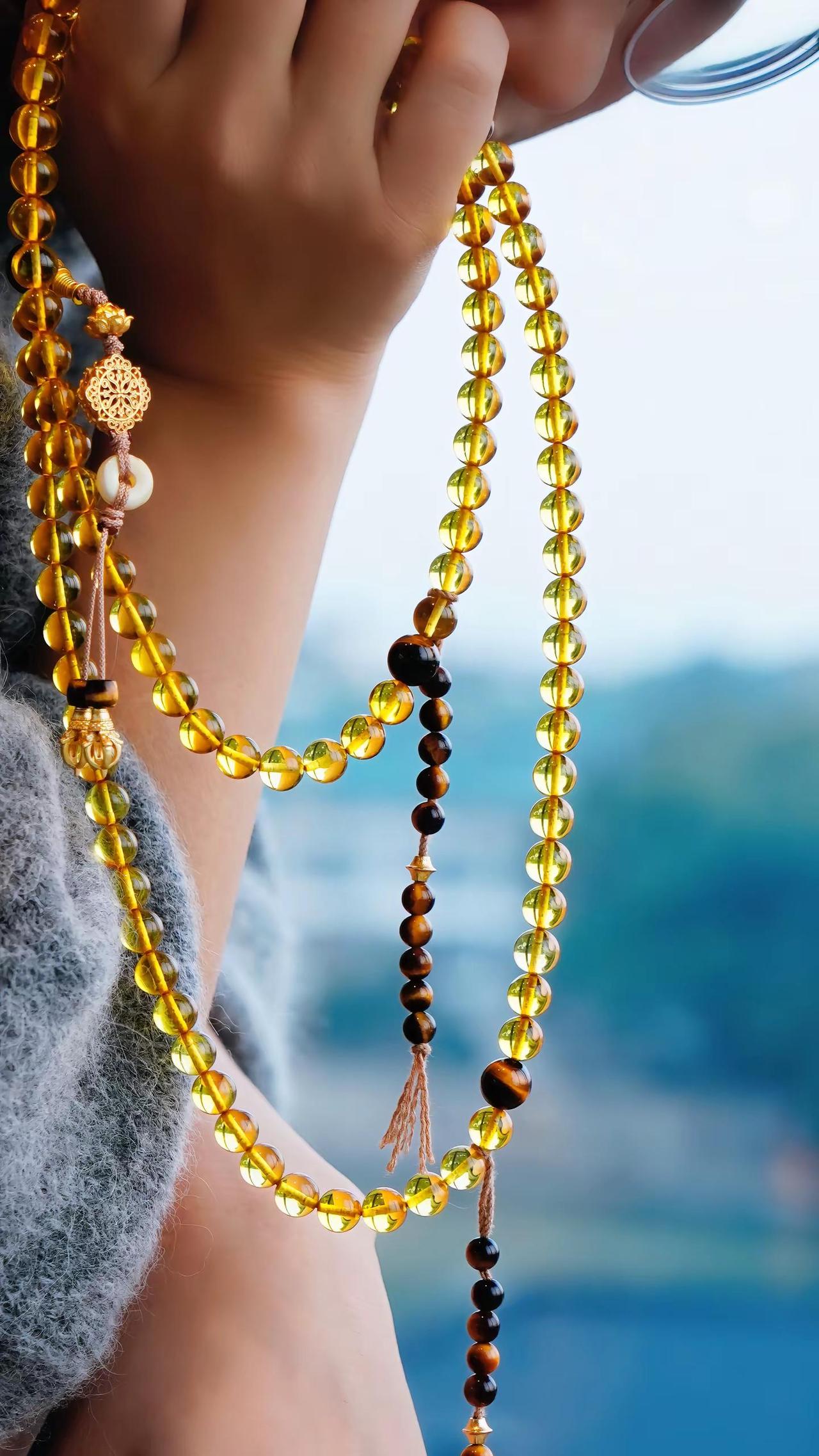 这佛珠,当然不是黄水晶!这是金珀~你能叫出它的名字吗 让人着迷的东方之美 108