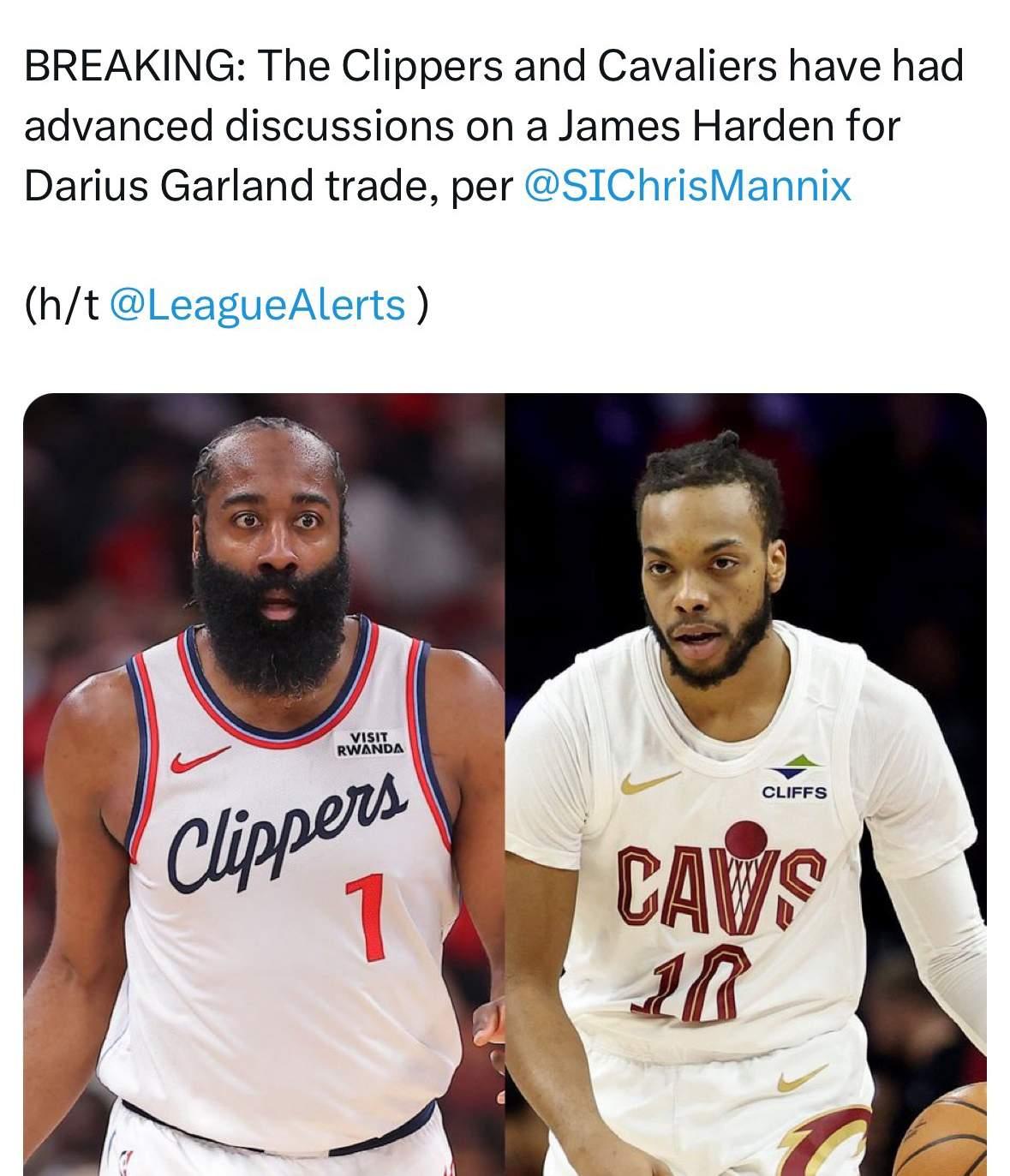骑士队加兰取关了米切尔!随后Shams更新社交媒体:“哈登与骑士队的谈判已经进入