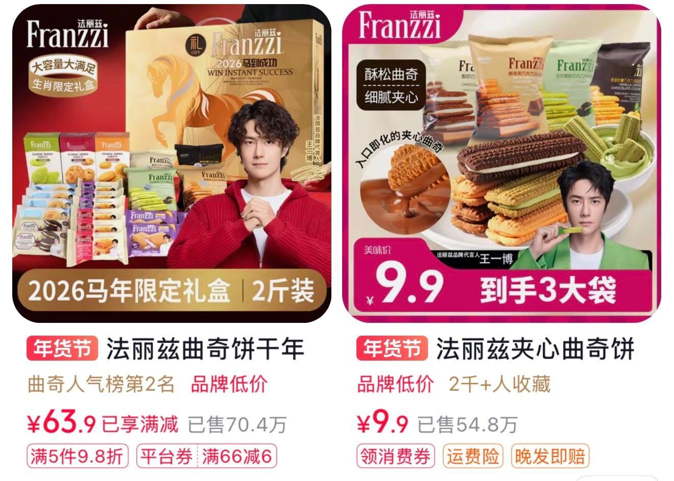 吗呀好厉害,法丽兹带王一博🔗的年货礼盒破70w了,热销最多的两款也破百万销量了