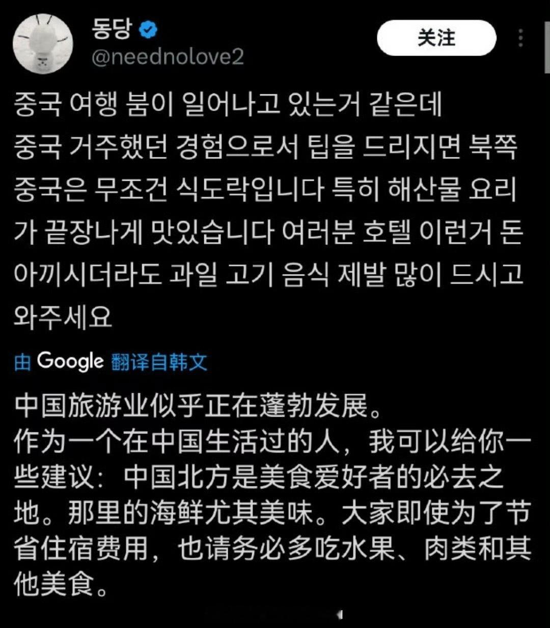 笑死了……韩国网友发帖建议韩国人去中国旅游要多吃水果和肉类……