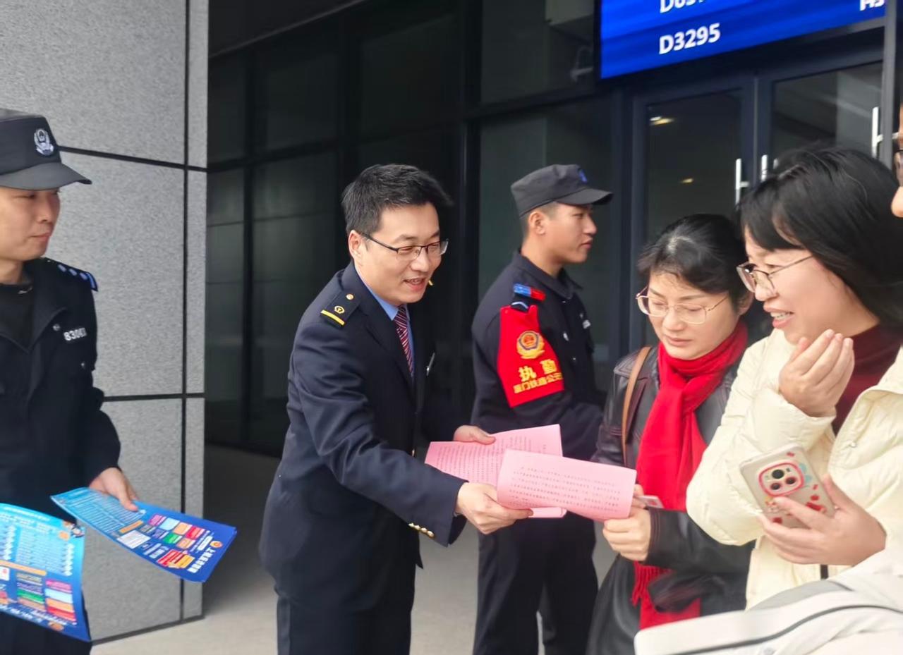 近日,@海峡情-南铁龙岩车务段 上杭站联合上杭县政府、铁路派出所,在车站出站口开展反诈宣传志愿服务活动,为过往旅客普及反诈知识、讲解电信诈骗防范技巧,切实增强旅客安全防范意识,用暖心服务筑牢出行安全防线。(文图:刘大彬)