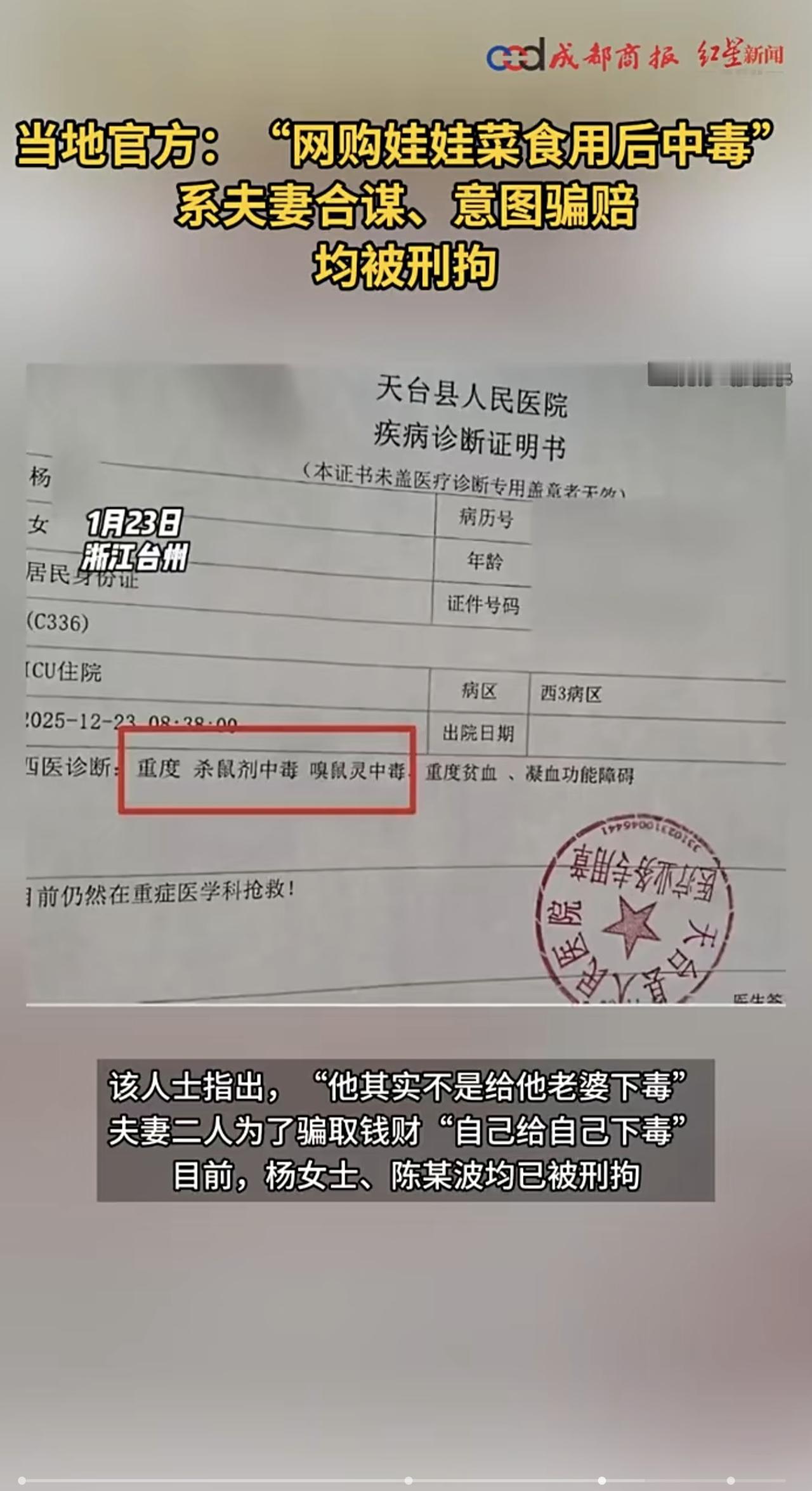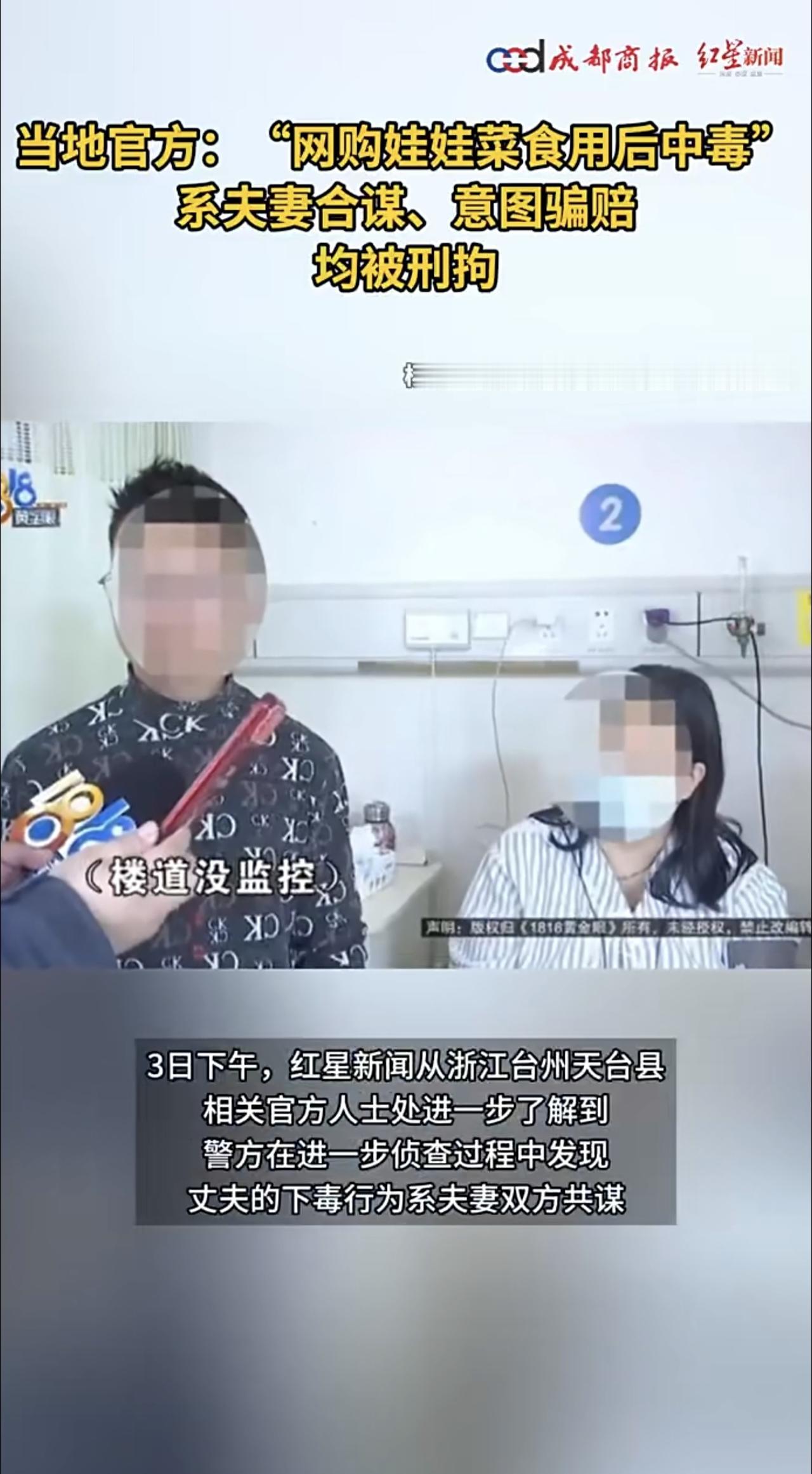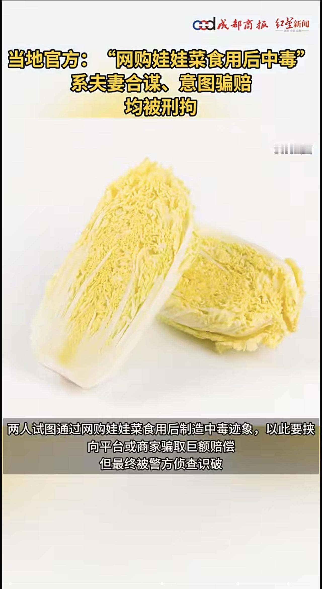 当地官方:“网购娃娃菜食用后中毒” 系夫妻合谋、意图骗赔均被刑拘