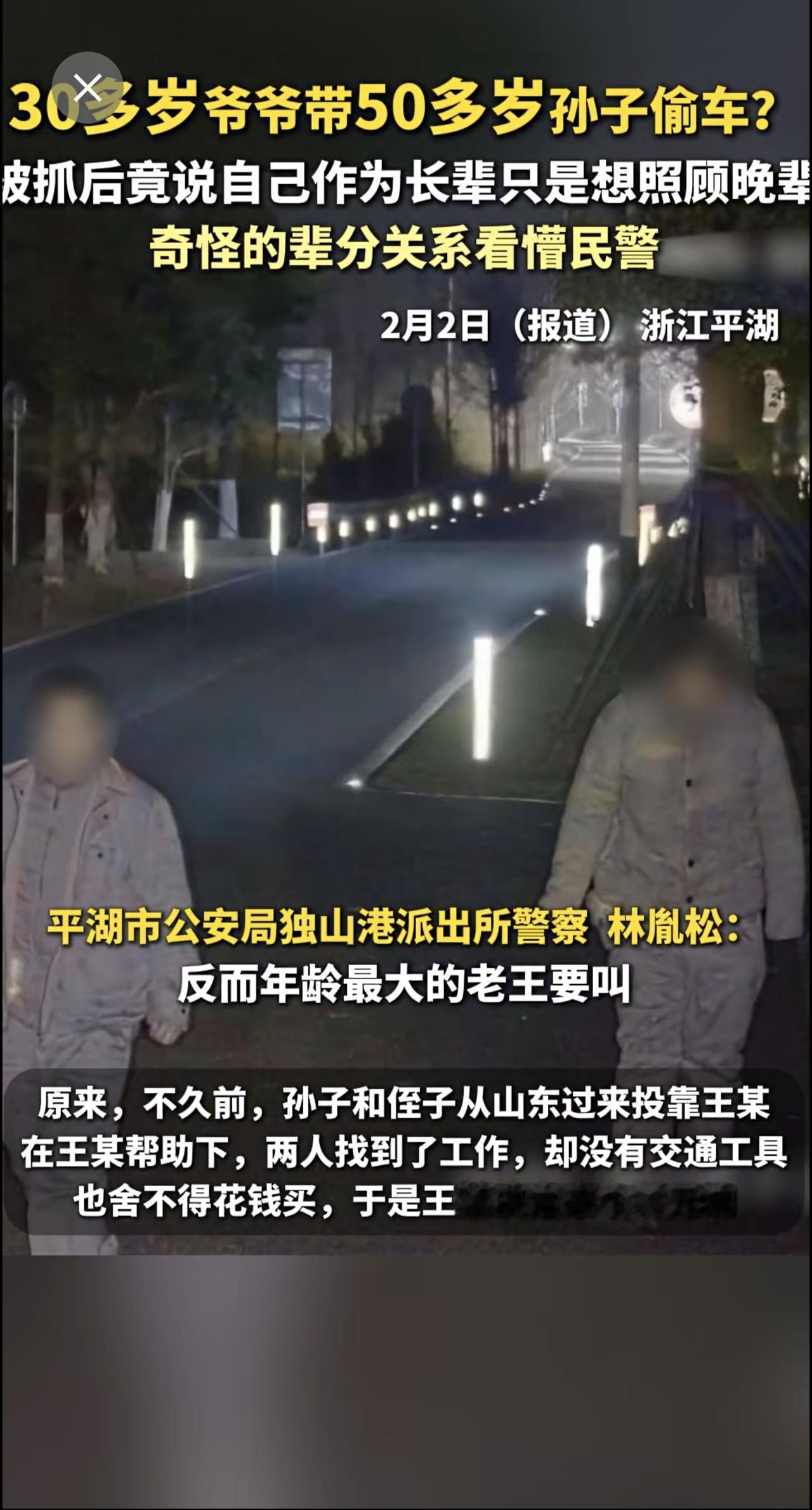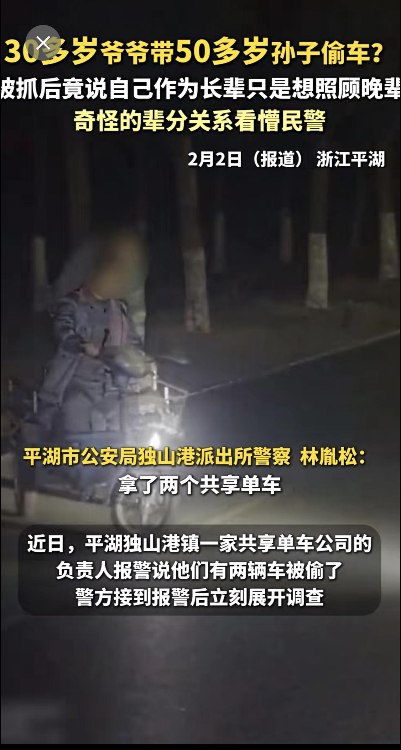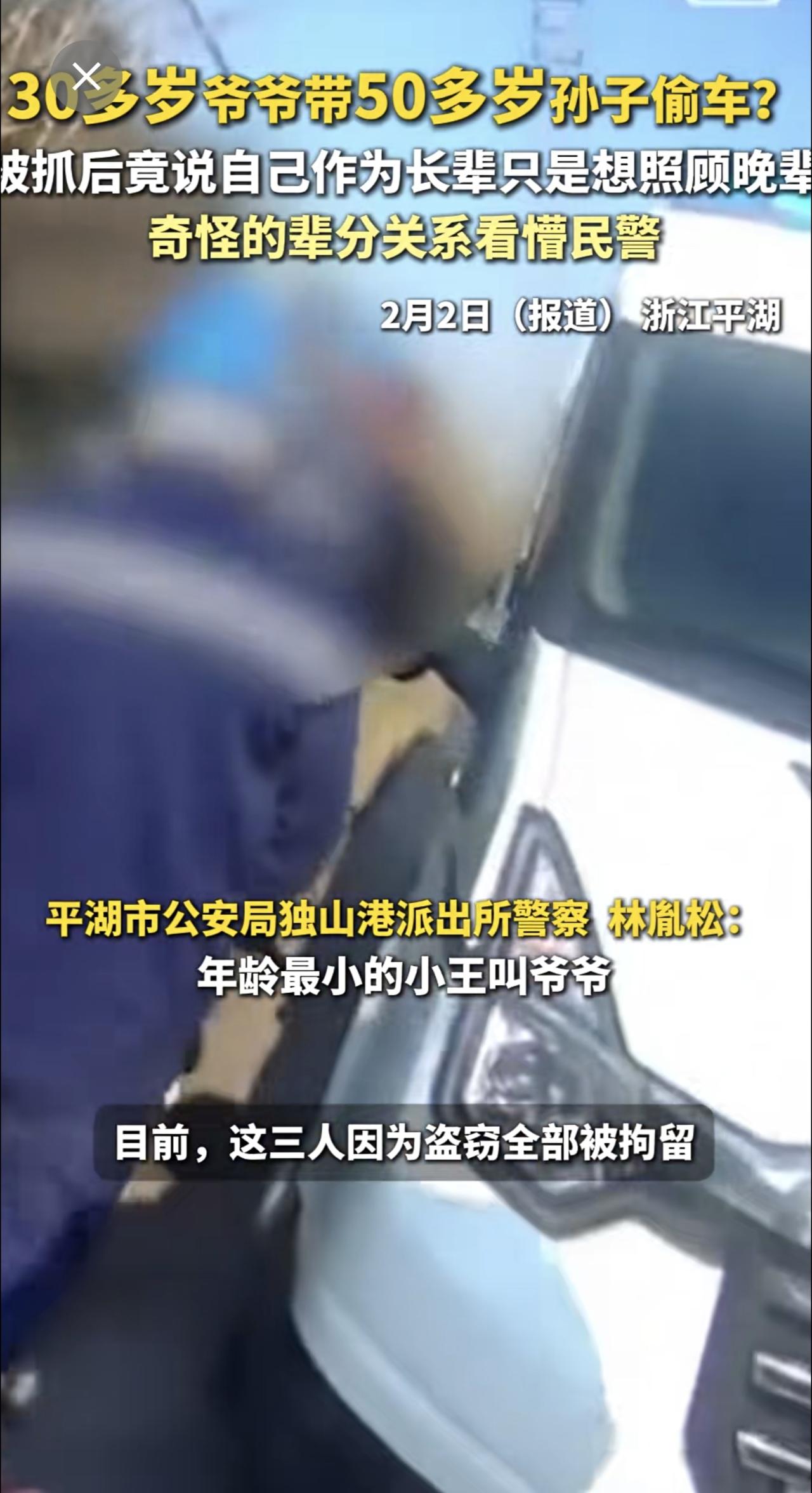 30多岁爷爷带50多岁孙子偷车?被抓后竟说自己作为长辈只是想照顾晚辈,奇怪的辈分关系看懵民警[捂脸]