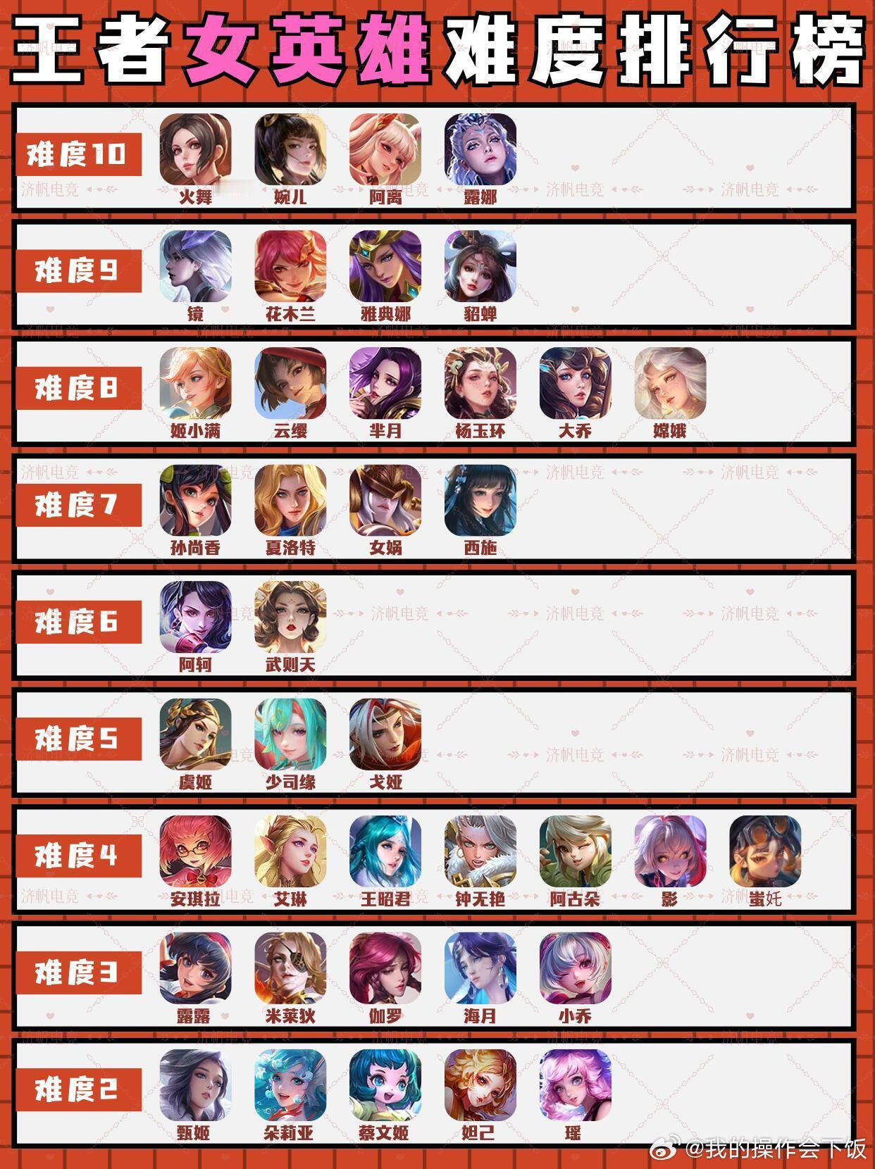 王者荣耀女英雄难度排行榜!