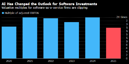 私募信贷管理机构ParkSquare的创始人RobinDoumar表示,软件行业的“无懈可击光环”早已过时,诸如极高的市盈率之类的指标“违背金融逻辑”。