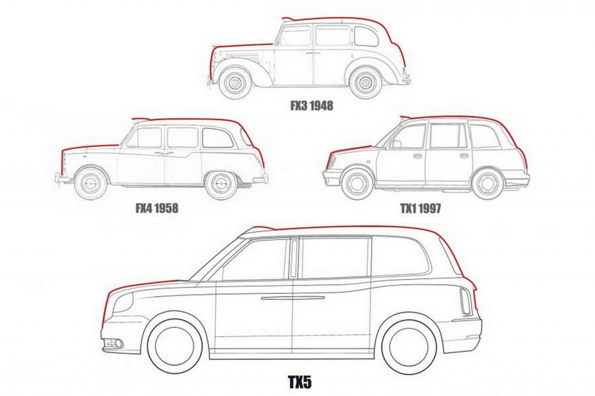 英国Black cab出租车给外界的印象就是完全复古的老爷车造型,主要原因其实是TX伦敦出租车系谱中的经典车型FX4生产周期实在太长(1958–1997),硬生生错过了这几十年间主流汽车外形的变化,也使得后续的两代车型不敢改变祖宗之法,都走了复古路线(甲壳虫也是类似的情况)。