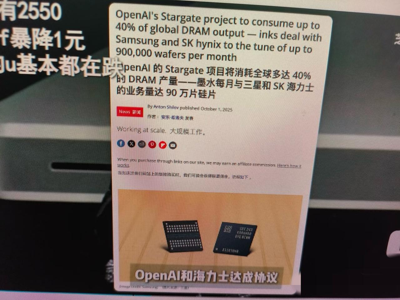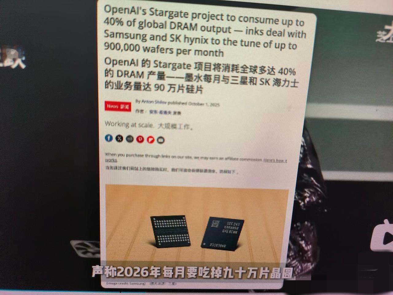 内存涨价的原因找到了 原来是英伟达向OpenAI承诺投资1000亿美元,openai和海力士达成协议,声称2026年每个月要吃掉90万片晶圆。 最近老黄拒绝这个项目。 笑死了,老黄的口头投资导致他自己没有内存颗粒使用,引发全球内存产品涨价。 回旋镖来得太快,哈哈哈哈哈。 openai长期采购总额一万多亿,去年收入才一百多亿。 内存有可能提前降价。