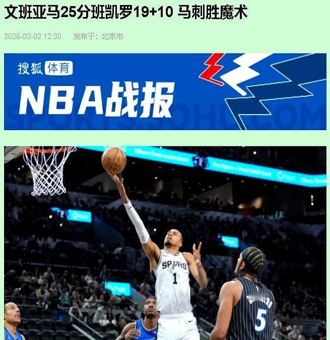 飞机晚点5小时,文班亚马把状元打得没脾气。 你是班凯罗,全场正负值-30,脸往哪搁?每次杀进去,一堵墙立在面前。投篮看不见框,传球找不到人。这球还怎么打? 比赛推迟了5个小时,圣安东尼奥的暴雪差点让飞机下不来。都以为马刺要累趴了,结果呢?开场就把魔术按在地上摩擦。 25分8板4抢断5盖帽。这不是数据,这是统治。他一个人就把禁区变成了禁飞区,伸手一捞就是抢断,起跳一拍就是火锅。 别再说马刺摆烂了。33胜16负,西部第二。这不是重建,这是直接亮剑,告诉全联盟他们回来了。 有些人是球星,有些人,他自己就是一套攻防体系。