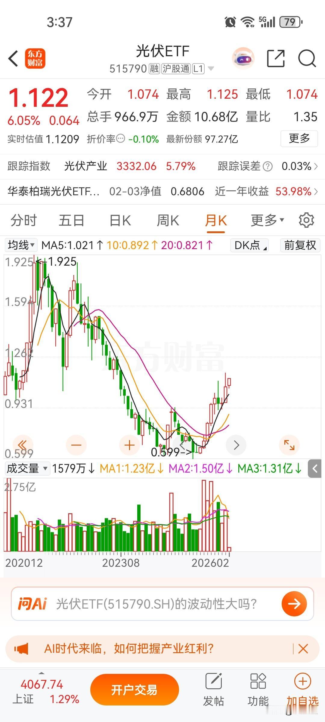 卫星etf和光伏etf暴涨,新的一轮光伏周期暴涨,解决电力完全只能靠光伏,什么可控核聚变那都是比氢能源还不靠谱,能替代煤炭目前只有光伏能做到,目前只有我们国家产能最大,全球光伏需求爆发试增长,因为全球都开始缺电,而全球能最快解决电力的办法只能靠光伏,其他像风能水能都受到条件限制,只有光伏只受光照条件影响发电量,全球气温升高,对光伏发电最有力,而太空光伏目前只是梦想,发电成本是现在普通光伏的十倍以上,是非常难实现的,如果人工智能能让人均收入提高五倍,这种高价电力消费才能没有感觉!