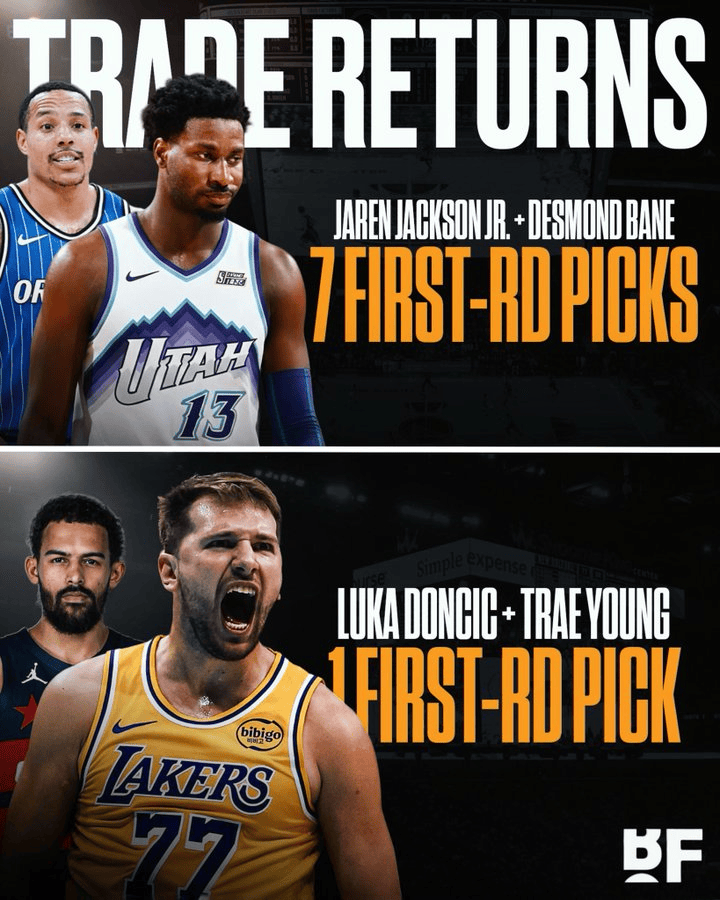 对此,美媒BasketballForever评价道:“卢卡-东契奇和特雷-杨的交易总共只换回了一个首轮签,而小贾伦-杰克逊和德斯蒙德-贝恩的交易,合计为灰熊带来了七个首轮签。快给我个合理的解释!”