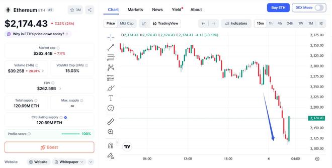 市值仅次于比特币的第二大加密货币以太坊跌势更猛,美股午盘曾跌破2110美元,刷新2025年5月以来低位,较亚市早盘2350美元上方的日高跌去略超10%。