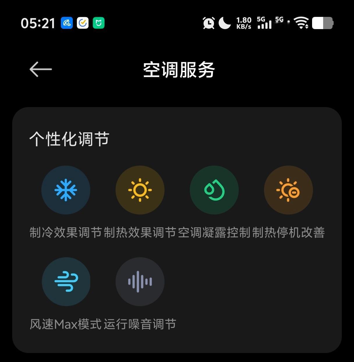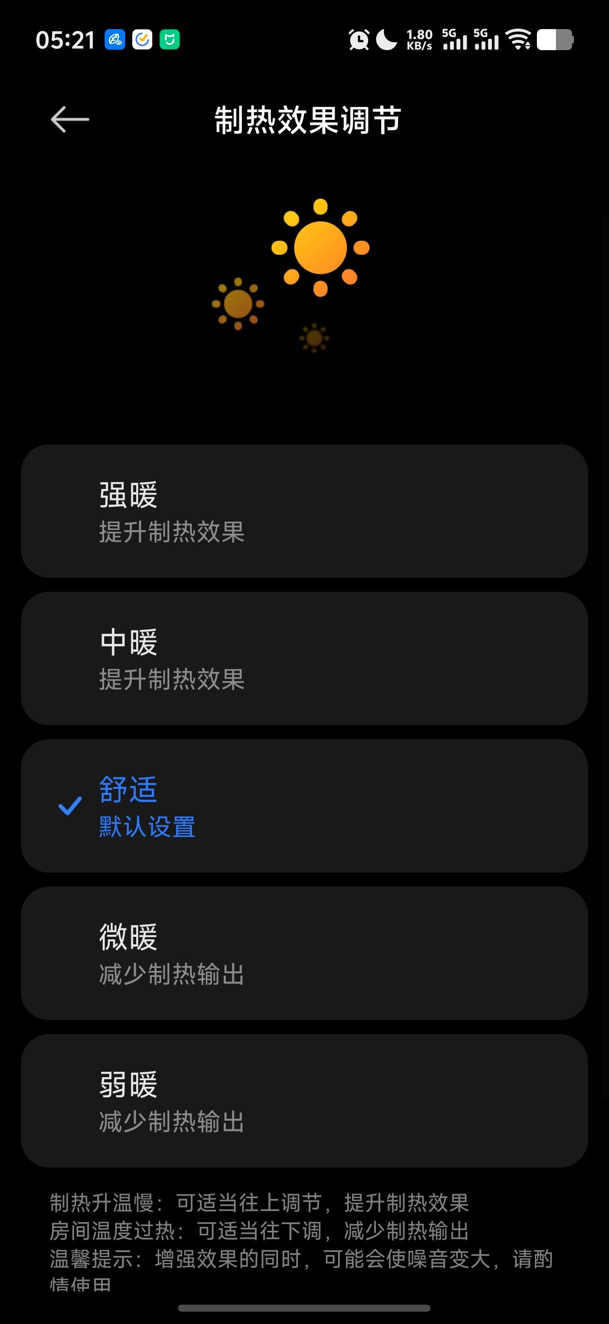 小米咋解决的呢它有个个性化设置页面你可以手动调更强的风速,更强的制热,更持久不停机的运行